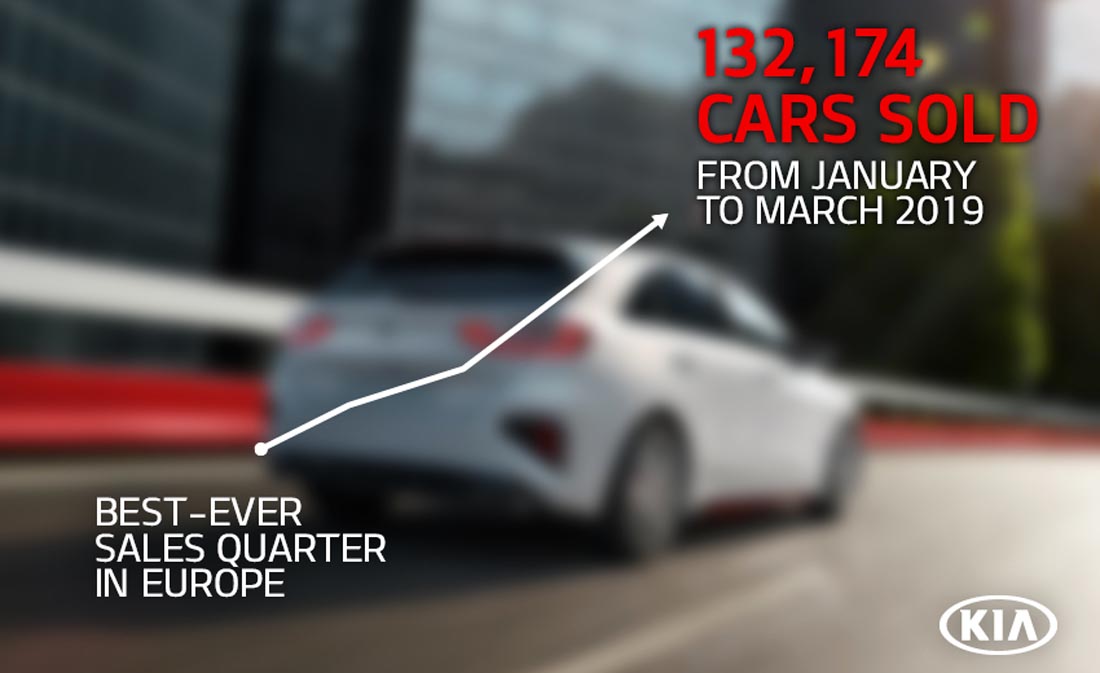 Η Kia Motors σημείωσε τους τρεις πρώτους μήνες του 2019 τις πιο υψηλές τριμηνιαίες πωλήσεις της στην Ευρώπη, σύμφωνα με τα τελευταία στοιχεία της ACEA (European Automobile Manufacturers Association). Οι πωλήσεις 132.174 μονάδων μέχρι στιγμής αντιπροσωπεύουν μία αύξηση πωλήσεων κατά 0,6%. Ταυτόχρονα το μερίδιο αγοράς της Kia στην Ευρωπαϊκή αγορά αυξήθηκε στο 3,2%, από 3,1% στο ίδιο χρονικό διάστημα του 2018.