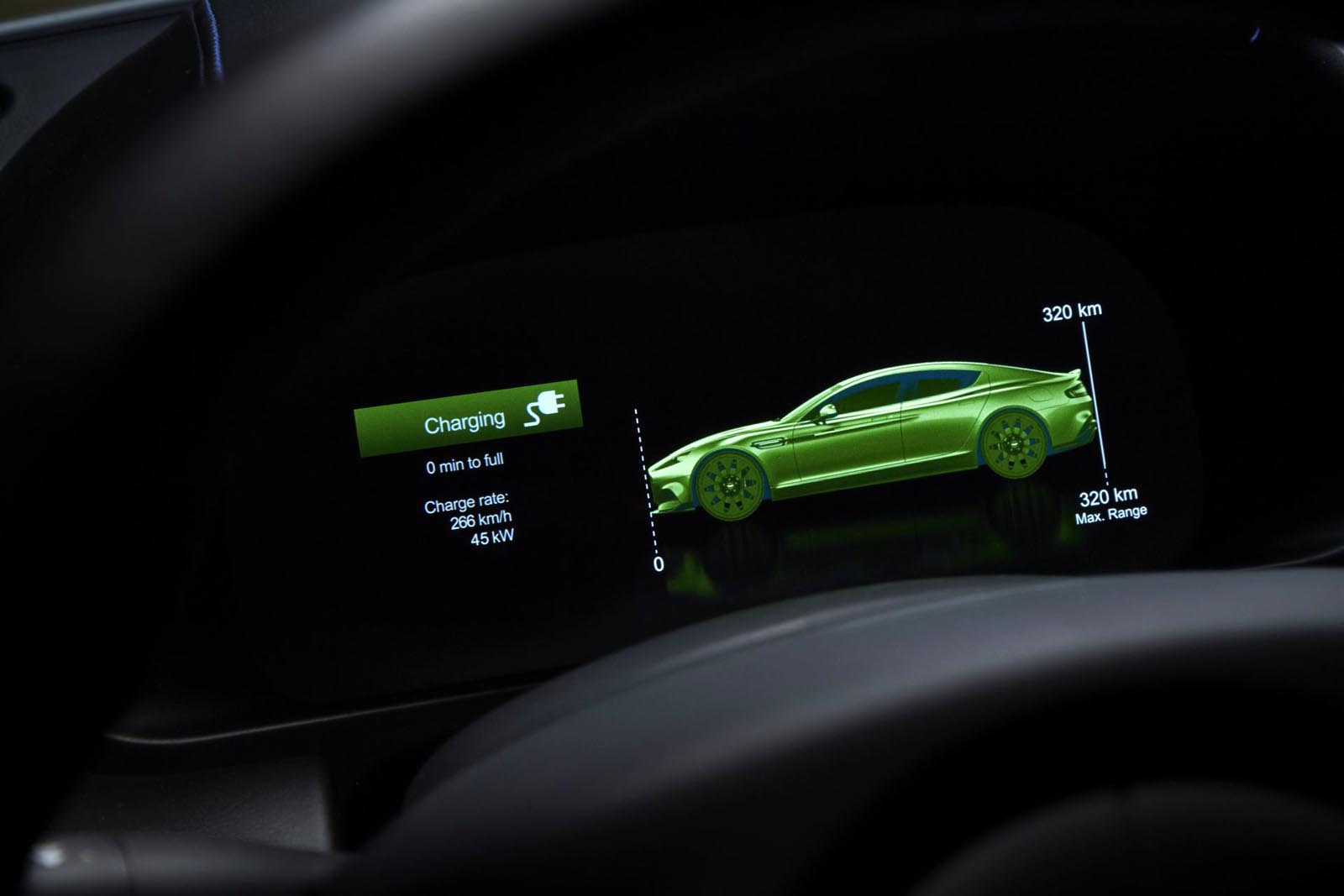 Η ηλεκτρική Rapid λίγο διαφέρει οπτικά από τη συμβατική με τον V12, με πιο έντονο χαρακτηριστικό της τις μπλε λεπτομέρειες του αμαξώματός της. Στο εσωτερικό τα όμορφα αναλογικά όργανα έχουν αντικατασταθεί από έναν ψηφιακό πίνακα οργάνων με διαγώνιο 10,0 ιντσών.