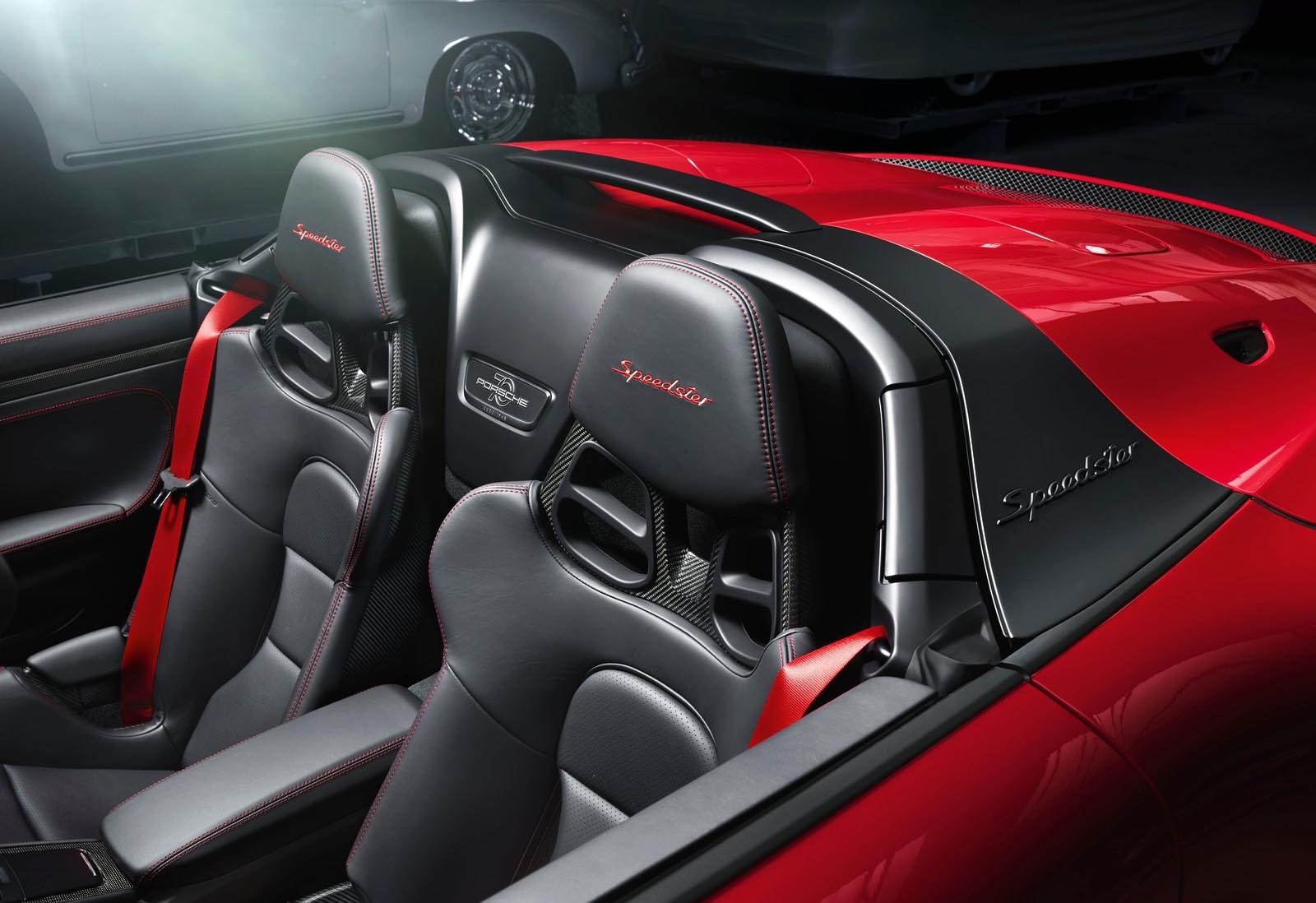 Η Speedster, με το πιο χαμηλό παρμπρίζ, τα μικρότερα παράθυρα και τις χαρακτηριστικές όσο και παραδοσιακές καμπύλες ακριβώς πίσω από τα δύο καθίσματά της που εδώ είναι κατασκευασμένες από ανθρακονήματα, είναι διαθέσιμη αποκλειστικά με χειροκίνητο κιβώτιο 6 σχέσεων. Γεγονός που τονίζει τον ξεκάθαρα σπορ προσανατολισμό της, όπως και η προσπάθεια περιορισμένου του βάρους της.