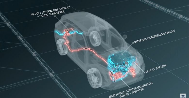 Αυτό περιλαμβάνει ένα συσσωρευτή ιόντων λιθίου, τάσης 48V και χωρητικότητας 0,44 kWh, έναν LDC μετατροπέα, (χαμηλού Voltage DC/DC) και την κύρια μονάδα Mild Hybrid Starter Generator. Το αυτοκίνητο, μάλιστα, διατηρεί το συμβατικό ηλεκτρικό κύκλωμα των 12V, το οποίο όμως είναι συνδεδεμένο μέσω του LDC με το 48V. Με αυτό τον τρόπο, η ενέργεια του συσσωρευτή μπορεί να χρησιμοποιηθεί για να εξασφαλίσει τη σταθερότητα της τάσης του συμβατικού κυκλώματος.