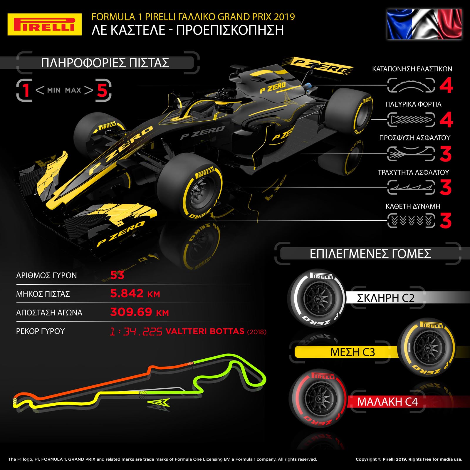 • Στην πίστα του Paul Ricard κυρίαρχο ρόλο παίζουν οι πλευρικές δυνάμεις σε σχέση με την ελκτική πρόσφυση και τη σταθερότητα στο φρενάρισμα. Αυτό διευκολύνει στο να βρεθεί η ισορροπία στην θερμοκρασία των εμπρός και πίσω ελαστικών, παρότι η μεγάλη ευθεία Μιστράλ των 1.8km – διακόπτεται από σικέιν – ψύχει τα εμπρός ελαστικά. Επίσης υπάρχουν και μερικά σημεία βίαιου φρεναρίσματος.