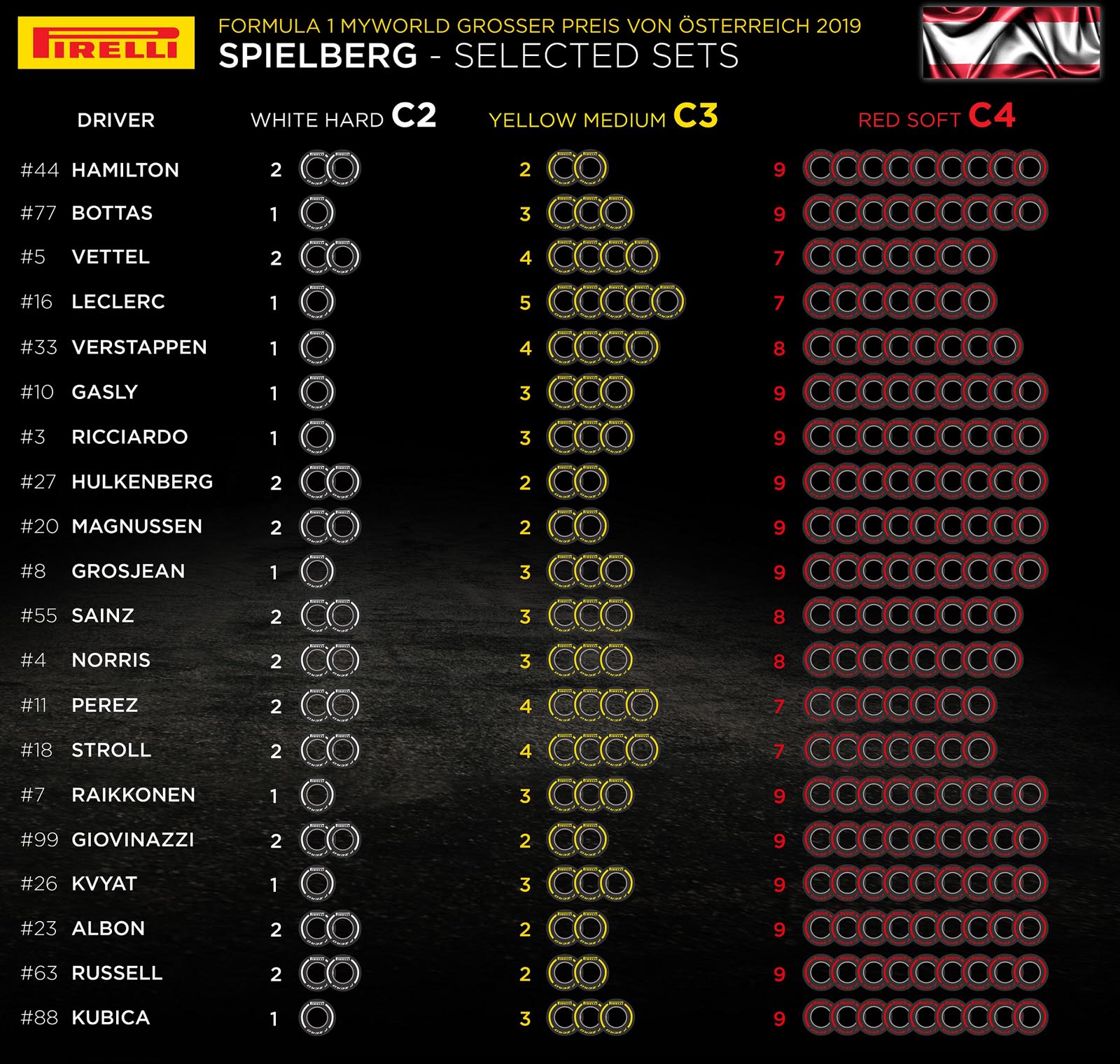 - Η Pirelli θα παραμείνει στην Αυστρία για μια ακόμη περίοδο ιδιωτικών δοκιμών μετά το grand prix. Η Alfa Romeo θα διαθέσει ένα μονοθέσιο για να δοκιμαστούν Τρίτη και Τετάρτη πρωτότυπα ελαστικά του 2020.