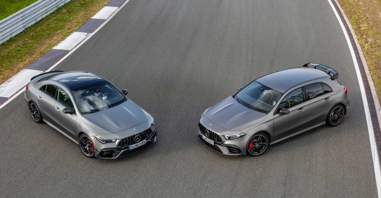 Χάρη σε αυτά τα νούμερα, τα πρώτα 100 χλμ./ώρα έρχονται σε μόλις 3,9 δλ. για την Α 45 και σε 4,1 για την CLA 45 (4,0 για την έκδοση S). Η τελική ταχύτητα περιορίζεται ηλεκτρονικά στα 250 χλμ./ώρα. Εκτός και αν αγοράσει κανείς το πακέτο AMG Driver’s Package, οπότε κερδίζει 20 επιπλέον χιλιόμετρα τελικής. Η κίνηση μεταδίδεται μέσω ενός αυτόματου, διπλόδισκου κιβωτίου 8 σχέσεων, σε όλους τους τροχούς, χάρη στο εξελιγμένο 4Matic σύστημα τετρακίνησης.