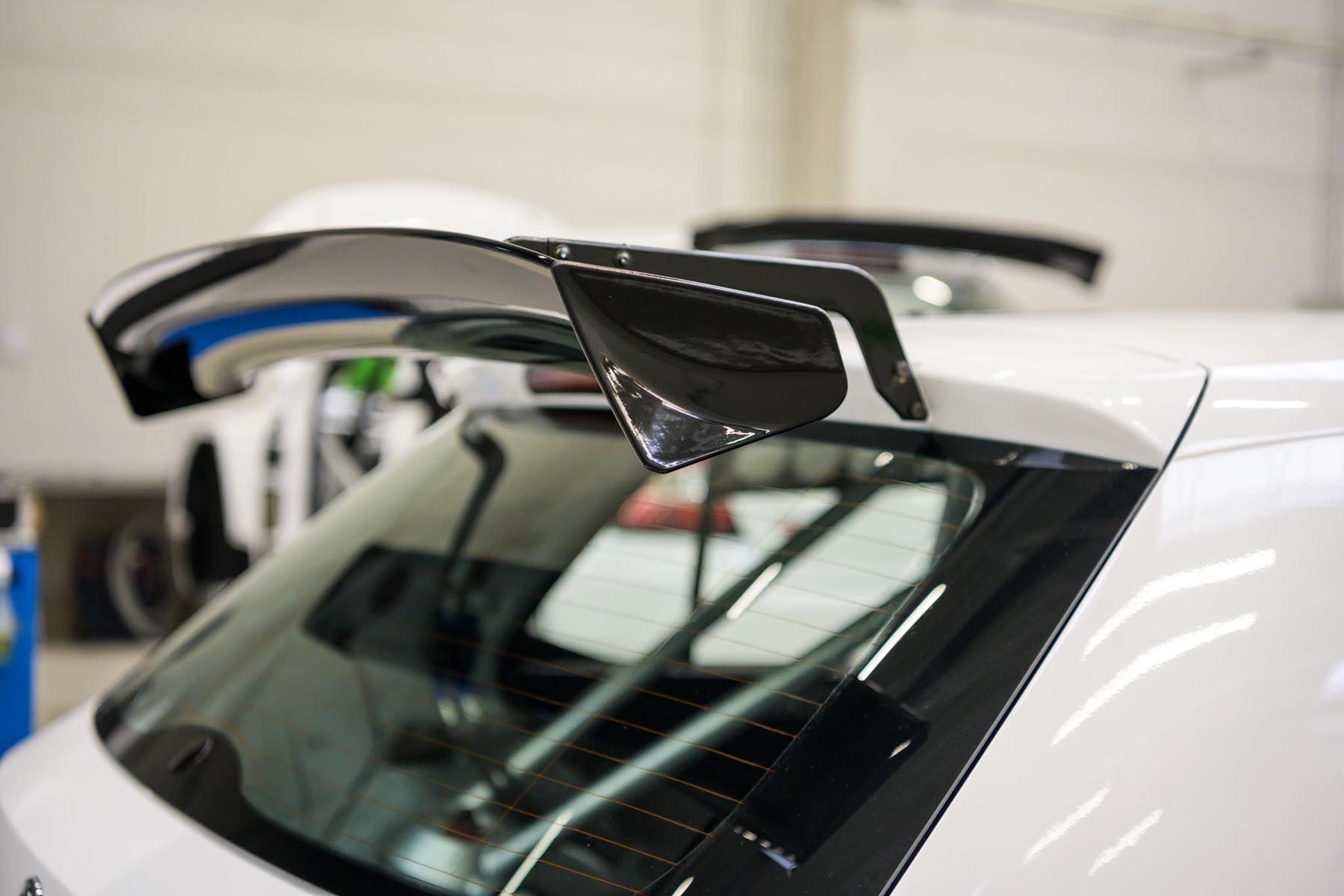 Ευρεία παρουσία ανθρακονημάτων – Μια άλλη σημαντική αλλαγή είναι η προσθήκη αρκετών εξαρτημάτων από ανθρακονήματα. Στη Fabia R5 evo τα φτερά της πίσω αεροτομής είναι από ανθρακόνημα, όπως επίσης τα καλύμματα των καθρεπτών αλλά και οι δύο αεραγωγοί στο καπό.