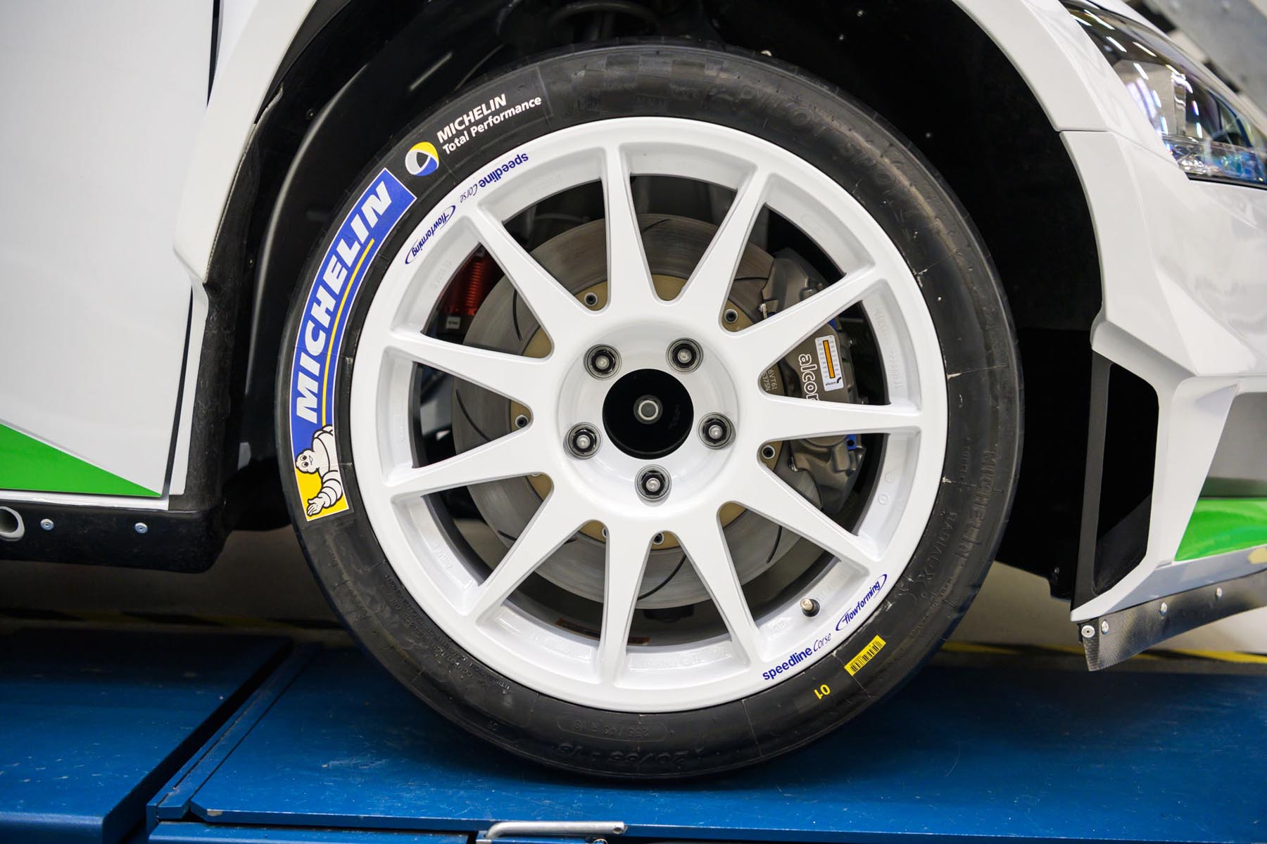 Νέες δαγκάνες φρένων – Οι έμπειροι φίλοι των αγώνων θα παρατηρήσουν τις νέες δαγκάνες φρένων, ιδιαίτερα εμφανή αλλαγή στην ασφάλτινη έκδοση. Ενώ το προηγούμενο μοντέλο χρησιμοποιούσε Brembo με ένα κόκκινο λογότυπο, στη νέα Fabia R5 evo έχουν αντικατασταθεί με αυτά της Alcon, με το λευκό λογότυπο του κατασκευαστή.