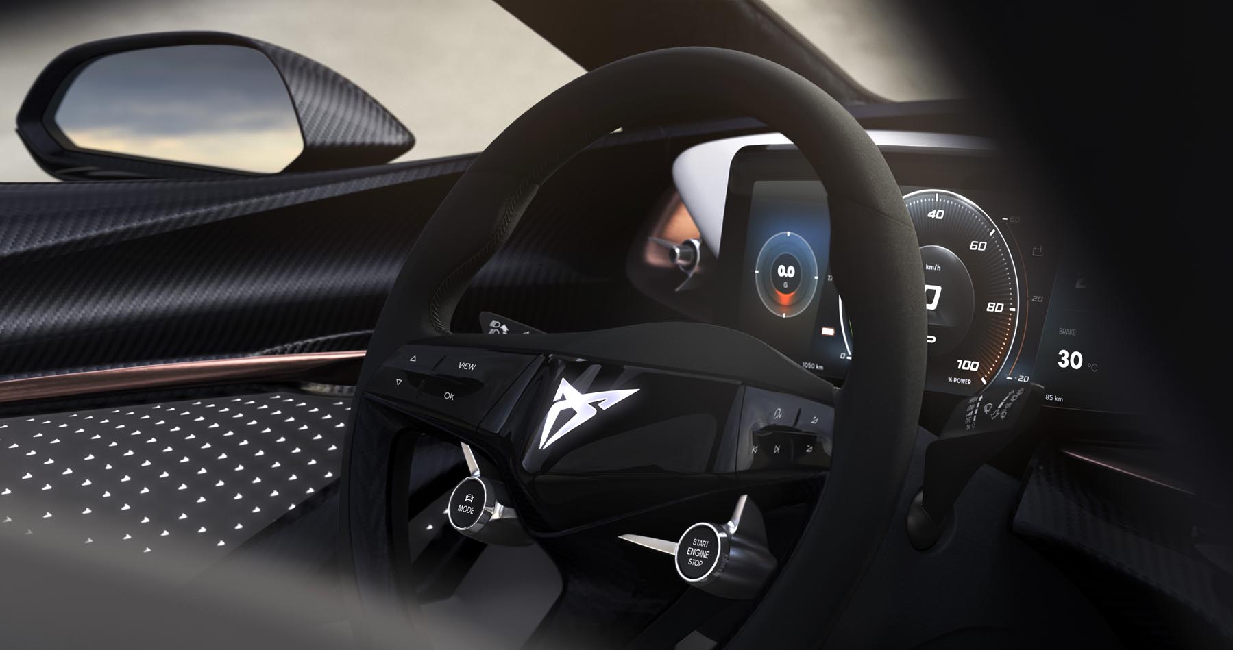 Το εσωτερικό επικεντρώνεται στην ισορροπία. Ισορροπία μεταξύ οδηγού και επιβατών, ισορροπία μεταξύ επιδόσεων και λειτουργικότητας. Το CUPRA Concept φέρνει νέες ιδέες σε αυτό που μπορεί να προσφέρει ένα μοντέλο CUPRA, ενώ προσφέρει τη δυνατότητα να μεταβάλλει και να προσαρμόζει την προσωπικότητα του σύμφωνα με τις ανάγκες των επιβατών.
