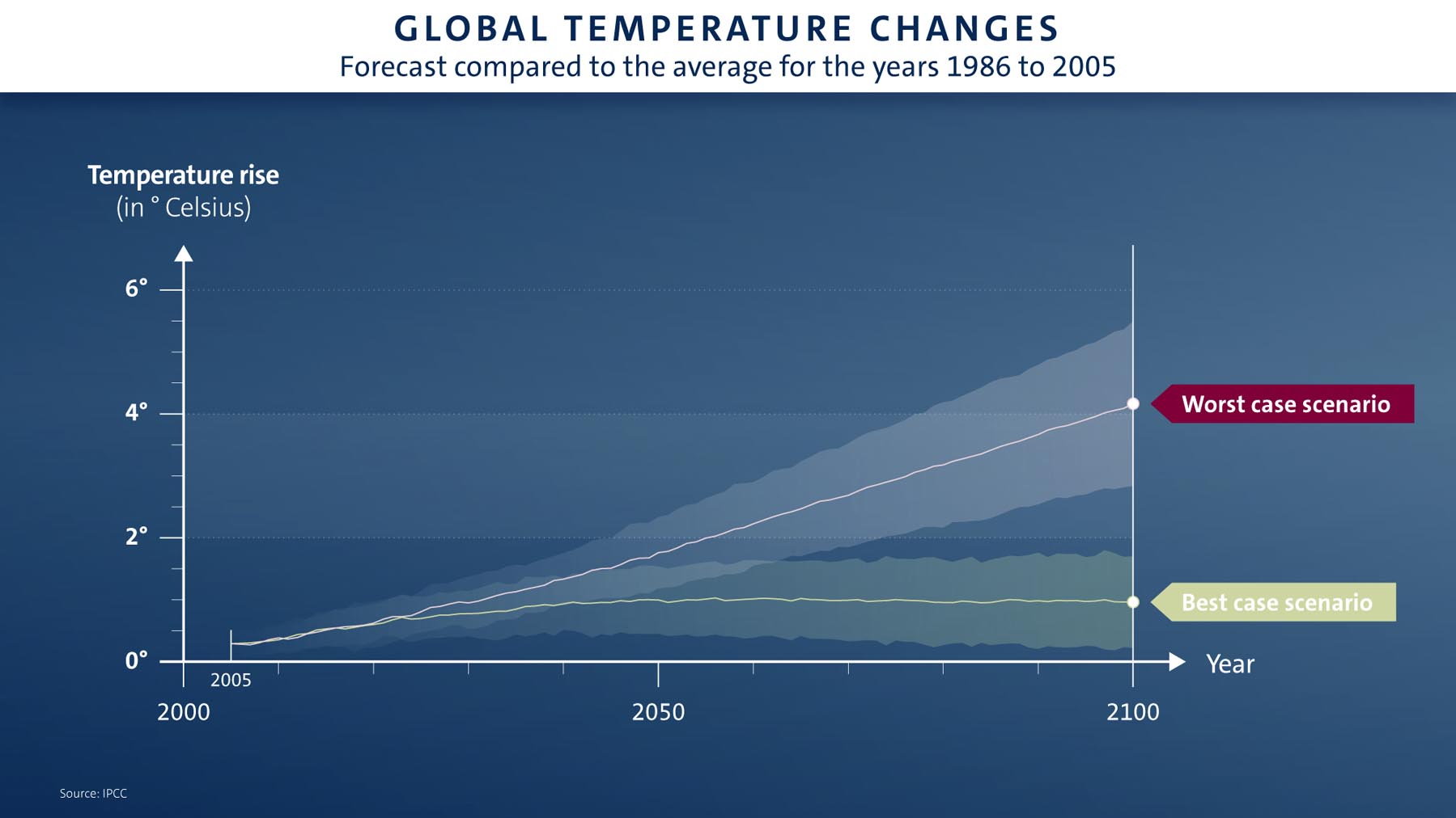 - Εάν οι εκπομπές CO2 συνεχίσουν να αυξάνονται παγκοσμίως, μέχρι το 2100 η Γη θα ζεσταθεί έως και τέσσερις βαθμούς Κελσίου.