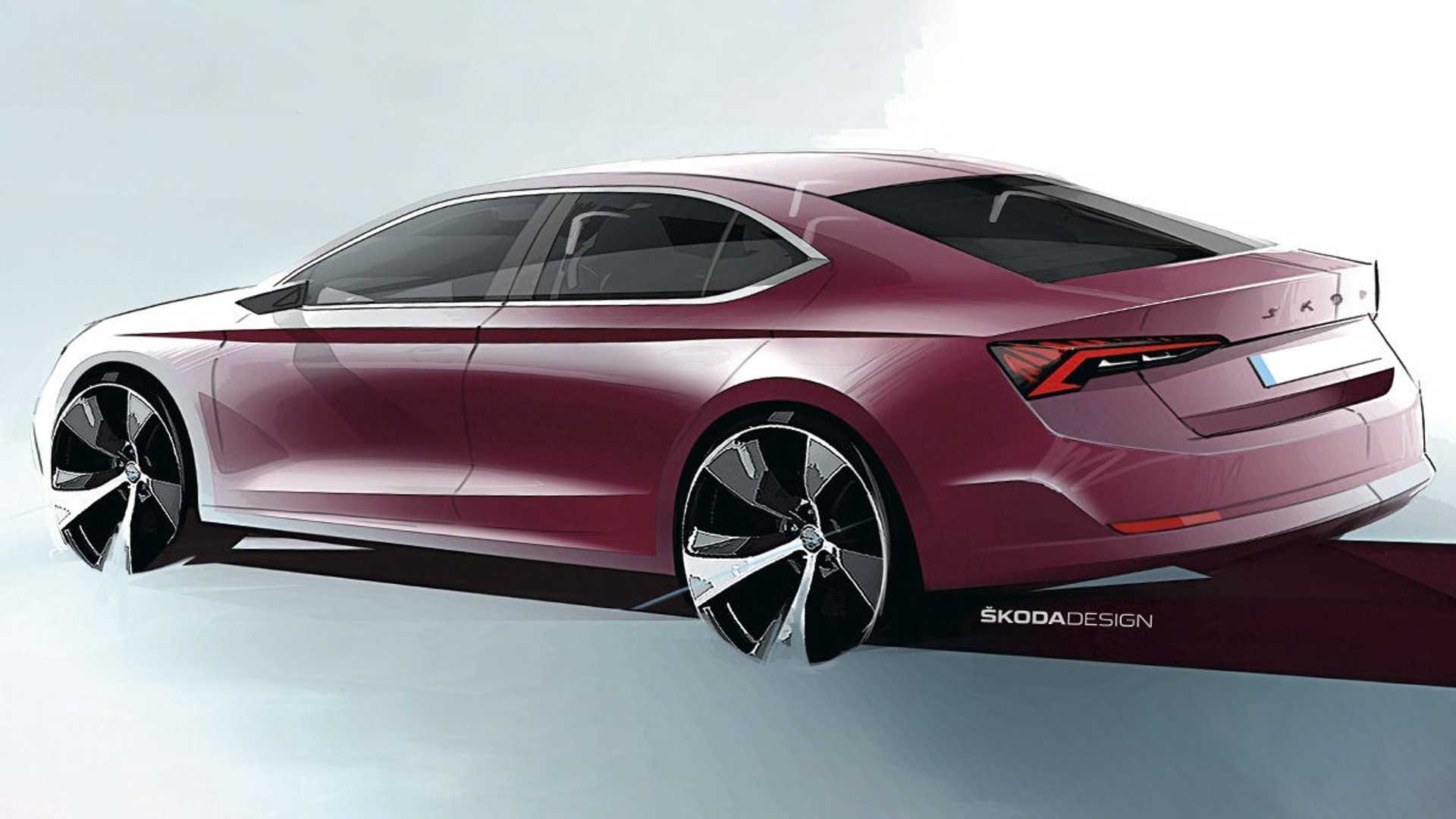 Η Skoda έδωσε τα πρώτα επίσημα σκίτσα στα οποία μπορούμε να δούμε ένα πιο επιμηκυμένο αμάξωμα, με μια πιο τονισμένη αλά κουπέ προσέγγιση, η οποία είναι σύμφωνη με τις προθέσεις της μάρκας να ακολουθήσει μια πιο συναισθηματική σχεδίαση. Παράλληλα οι πιο στενοί προβολείς δίνουν μία πιο πολυτελή και σπορ νότα.