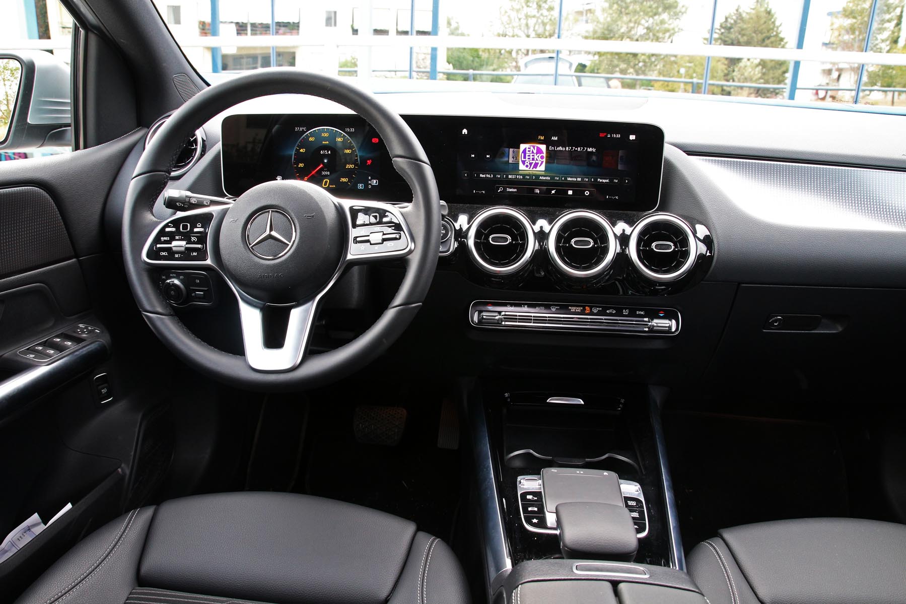 Αφήνοντας κατά μέρος τις εντυπώσεις που προκαλεί η εξωτερική της εμφάνιση, μία γερή δόση από το ποιόν της νέας B-Class έρχεται να προσφέρει η είσοδος στο εσωτερικό. Εκεί θα αντικρύσει κανείς ίσως ο,τι πιο ποιοτικό και προσεγμένο υπάρχει στην κατηγορία. Καταρχήν τις συνεχόμενες οθόνες του συστήματος MBUX, που αποτελεί το state-of-the-art infotainment της Mercedes. Για τα περισσότερα που μπορεί να χρειαστείτε, αρκεί να τα ζητήσετε με μία φωνητική εντολή και θα γίνουν. Από την αλλαγή των σταθμών, μέχρι τον προγραμματισμό του συστήματος πλοήγησης και τη ρύθμιση της θερμοκρασίας. Φυσικά, όλες οι παράμετροι (και μιλάμε για πολλές παραμέτρους…) ρυθμίζονται και μέσω της μεγάλης οθόνης αφής, ή των χειριστηρίων, στη βάση της κεντρικής κονσόλας.
