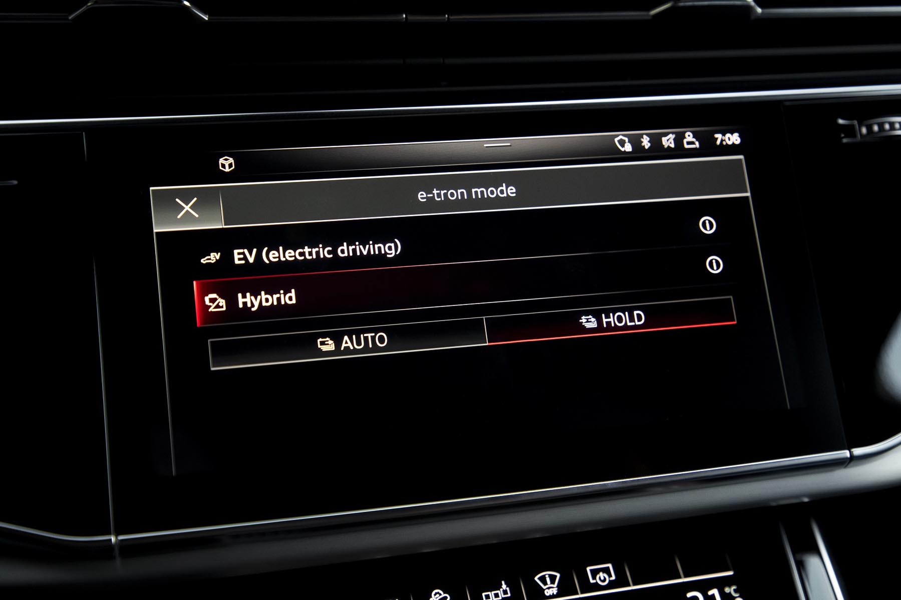 Φυσικά, εκτός από το λογισμικό “EV”, ο οδηγός του Audi Q7 TFSI e quattro μπορεί να επιλέξει και ένα από τα επτά διαφορετικά προφίλ οδήγησης του αυτοκινήτου: “comfort,” “efficiency,” “auto,” “dynamic,” “individual,” “allroad” (με την προαιρετική αερανάρτηση) και “offroad”. Οι επιλογές αυτές επιδρούν στη χαρτογράφηση του κινητήριου συστήματος, την αερανάρτηση και το σύστημα διεύθυνσης.