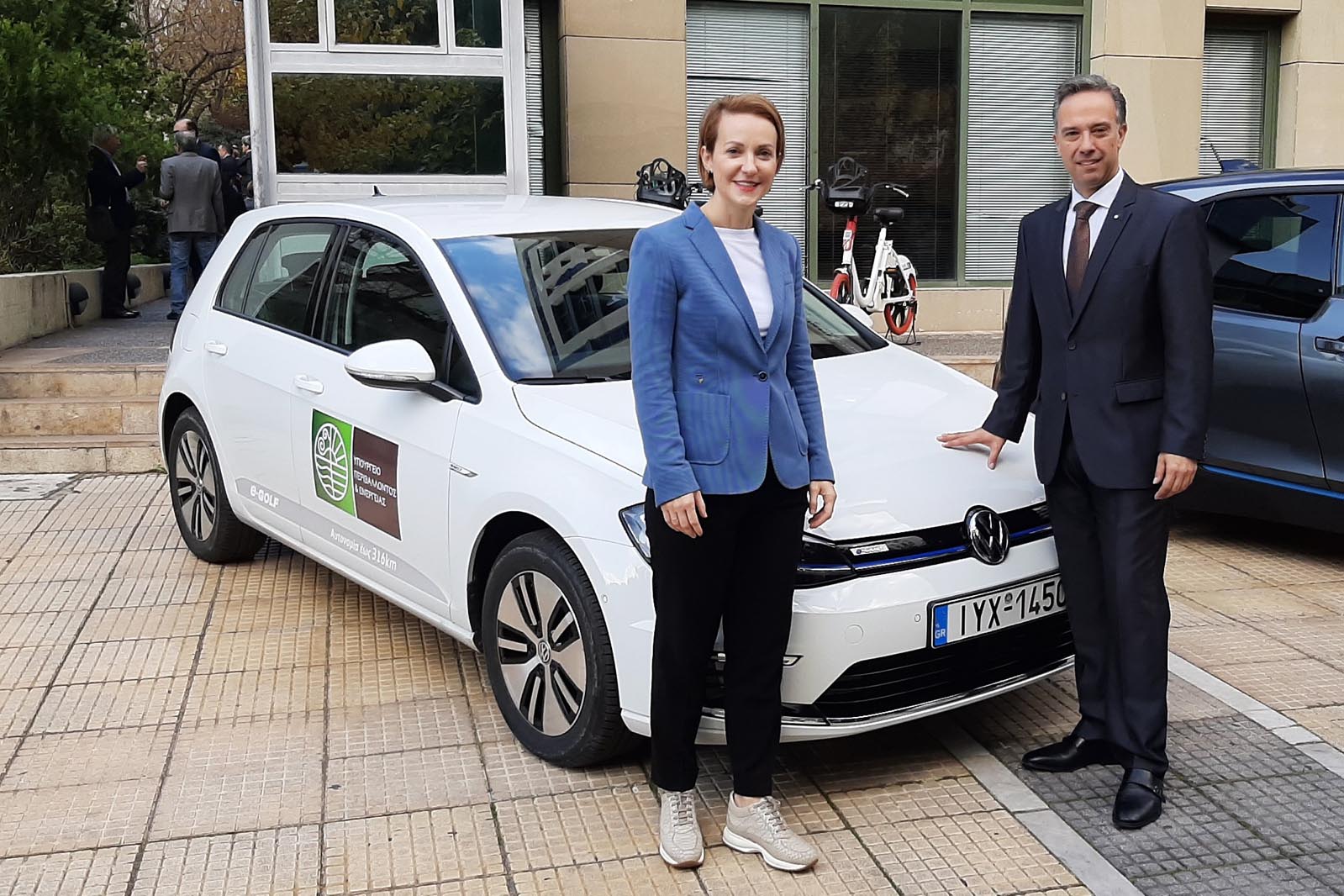 Ένα Volkswagen e-Golf είναι ανάμεσα στα πρώτα τρία ηλεκτρικά αυτοκίνητα που παρέλαβε για τις ανάγκες του το Υπουργείο Περιβάλλοντος και Ενέργειας. Τα αυτοκίνητα παρουσιάστηκαν σε ειδική εκδήλωση από τη Γενική Γραμματέα Ενέργειας και Ορυκτών Πρώτων Υλών Αλεξάνδρα Σδούκου, παρόντος του Υπουργού Κωστή Χατζηδάκη, ο οποίος δήλωσε σχετικά: «Έχουμε μια φιλόδοξη “πράσινη” ατζέντα. Ξεκινάμε από εμάς τους ίδιους και γι’ αυτόν τον λόγο αποφασίσαμε και πήραμε τρία ηλεκτρικά αυτοκίνητα ενώ τοποθετήσαμε φορτιστή έξω από το υπουργείο. Παράλληλα, αποκτήσαμε ηλεκτρικά ποδήλατα τα οποία, όπως και τα αυτοκίνητα, θα χρησιμοποιούνται για τις μετακινήσεις των υπαλλήλων μας».