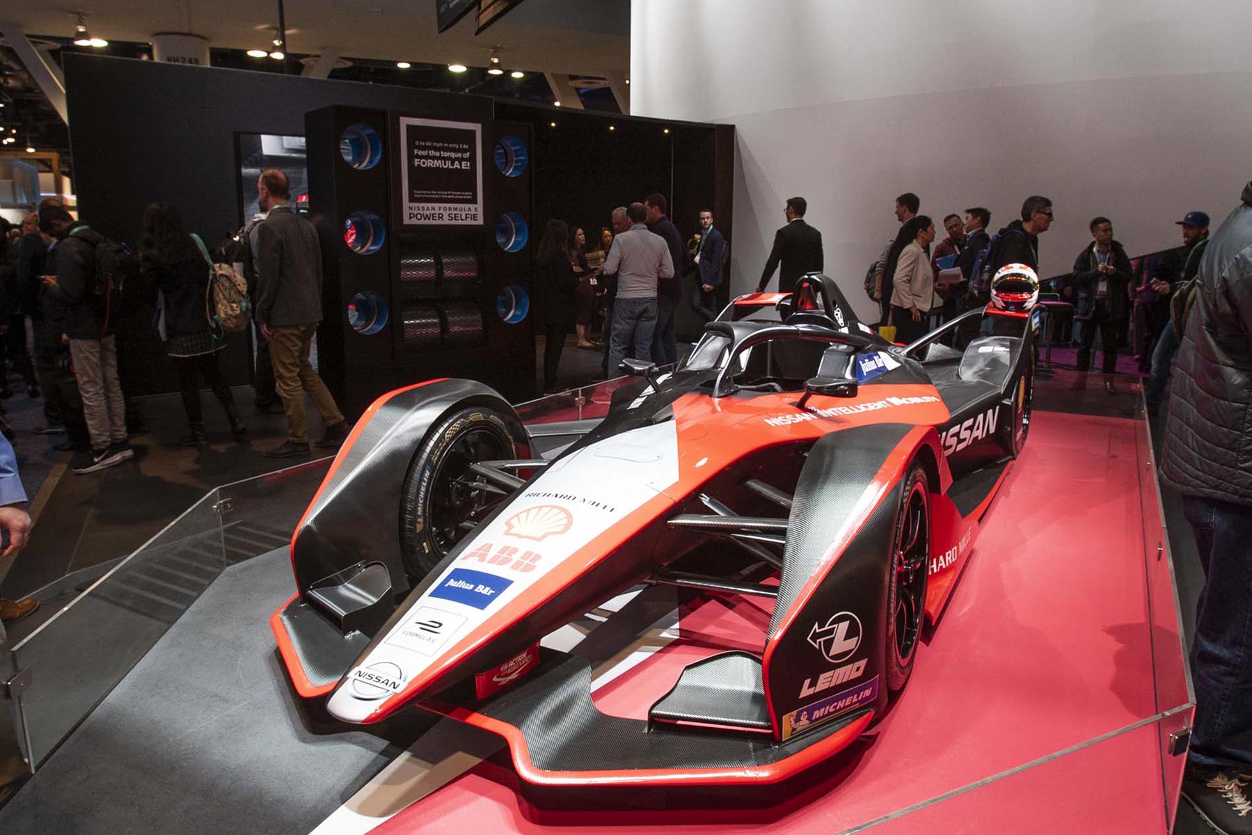 Το αυτοκίνητο μηδενικών εκπομπών ρύπων της Nissan Formula Ε, θα δεσπόζει στον χώρο του ειδικά διαμορφωμένου περιπτέρου. Το κόκκινο, ασπρόμαυρο σχέδιό του, εμπνέεται από το ιαπωνικό ένδυμα κιμονό, ένα παραδοσιακό σύμβολο της μακροζωίας και της καλής τύχης.