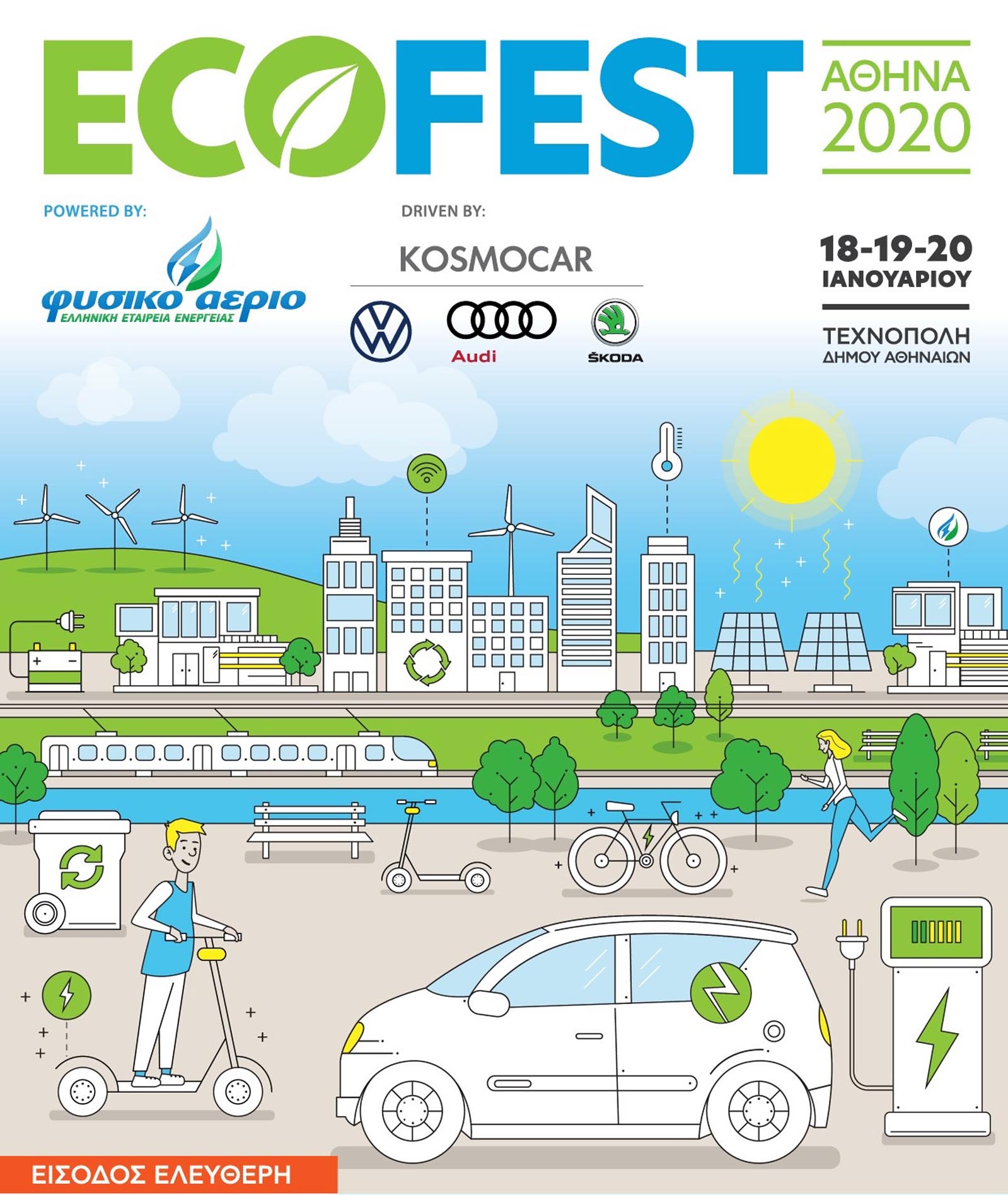 Η Kosmocar είναι Μέγας Χορηγός του Eco-Fest 2020, της πολύ σημαντικής εκδήλωσης για το περιβάλλον, τη βιώσιμη ανάπτυξη και την ηλεκτροκίνηση, που διοργανώνεται 18-20 Ιανουαρίου 2020 στην Τεχνόπολη, στο Γκάζι