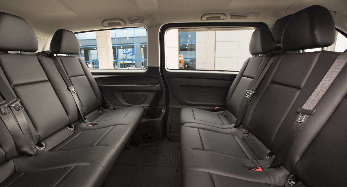 Ο οδηγός έχει τη δυνατότητα να ρυθμίζει το περιβάλλον εργασίας του καθώς η κολώνα του τιμονιού ρυθμίζεται μηχανικά καθ’ ύψος (4.,8°) και κατά μήκος (60 mm) ενώ το εργονομικά σχεδιασμένο κάθισμά του εντυπωσιάζει με την ιδιαίτερη άνεση που προσφέρει καθώς ρυθμίζεται προς έξι κατευθύνσεις. Η επένδυση όλων των καθισμάτων είναι από μαύρο τεχνητό δέρμα. Επιπλέον, τα καθίσματα του χώρου επιβατών προσαρμόζονται σε κάθε απαίτηση χρήσης με τη δυνατότητα αντιστροφής της μεσαίας σειράς. Οι δύο σειρές καθισμάτων των πίσω επιβατών αποτελούνται από πάγκους τριών αναπαυτικών θέσεων με ζώνες ασφαλείας τριών σημείων, σύστημα στερέωσης παιδικού καθίσματος ISOFIX και προσκέφαλα.
