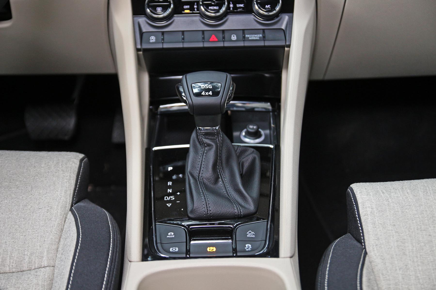 Ένα ακόμα καλό είναι η αρμονική συνύπαρξή του με το κιβώτιο διπλού συμπλέκτη DSG. Οι αλλαγές πραγματοποιούνται πάντα στους σωστούς χρόνους, αρκετά γρήγορα και χωρίς μπερδέματα. Σε μία τόσο πλούσια, ωστόσο, έκδοση, θα έπρεπε να έχουν προβλεφθεί paddles, για τη σειριακή αλλαγή των σχέσεων, πίσω από το τιμόνι.