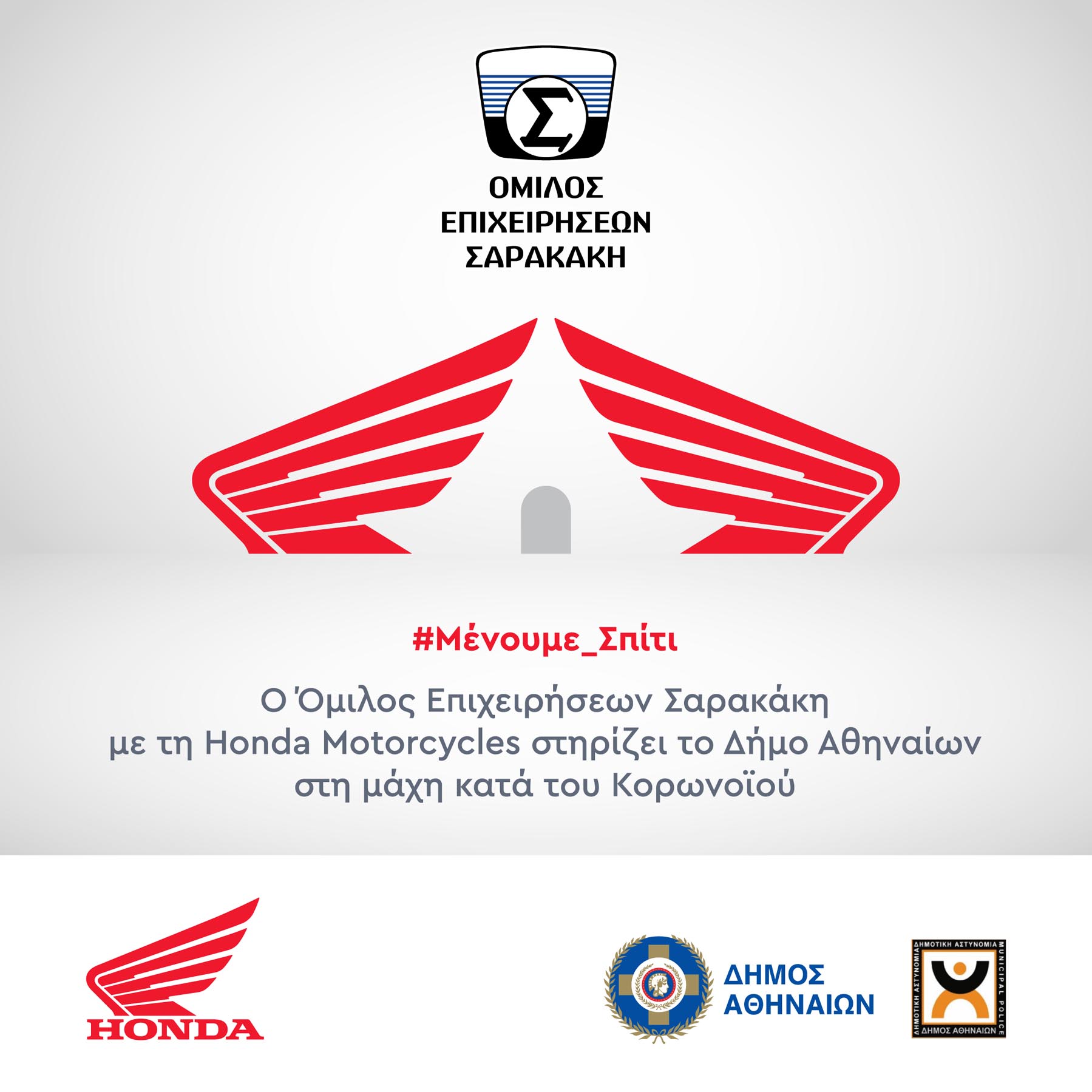 Στο ίδιο πνεύμα και σε συνεννόηση με τον Δήμαρχο Αθηναίων, κ. Κώστα Μπακογιάννη, παραχωρήσαμε 15 καινούργια δίκυκλα Honda Supra GTR150, προς αξιοποίησή τους από την Δημοτική Αστυνομία του Δήμου Αθηναίων με στόχο την αποτελεσματικότερη ανταπόκριση στον έλεγχο των Βεβαίωσεων Μετακίνησης των πολιτών, για τη διασφάλιση τήρησης του επιβεβλημένου περιορισμού κυκλοφορίας.