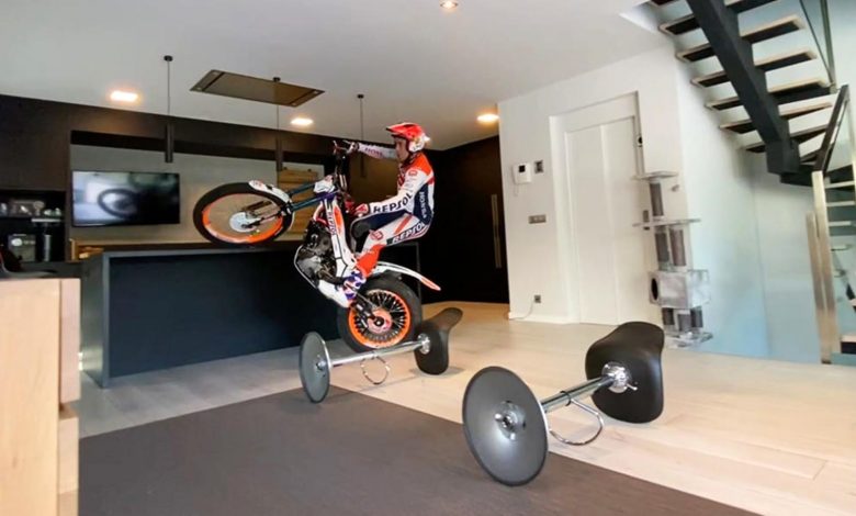 Όπως θα δείτε θέλησε να μας δείξει πως περνά δημιουργικά την μέρα του την περίοδο της καραντίνας στο σπίτι του. Έτσι, πήρε την μοτοσικλέτα του και ξεκίνησε να βολτάρει μέσα στο σπίτι του. Το οποίο φυσικά έχει τους χώρους και την διαρρύθμιση ώστε να μπορεί να κινείται η Honda Montesa Cota 4RT.