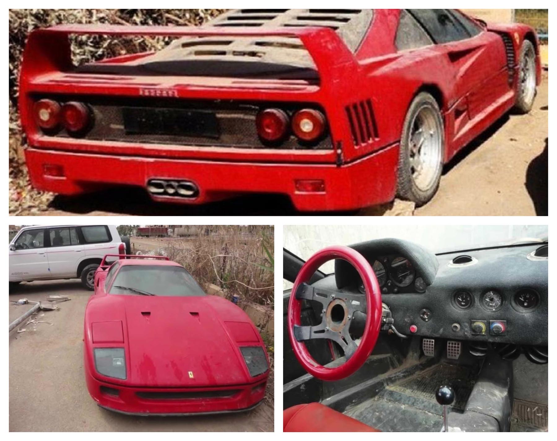 Μετά την εισβολή ξέμεινε εκεί και όποιος περνούσε από δίπλα της ασελγούσε αποσπώντας και κάτι από πάνω της. Παρά την άθλια κατάσταση στην οποία εντοπίστηκε το σκαρί αυτή της F40 είναι σε καλή κατάσταση και με μια αναπαλαίωση μπορεί να γίνει κουκλί. Άλλωστε μια καλοδιατηρημένη F40 πιάνει περίπου 1-1,5 εκ. ευρώ.
