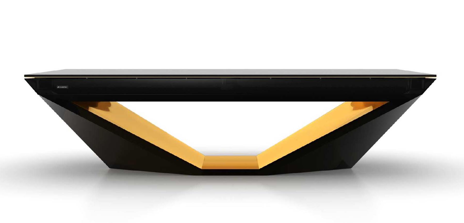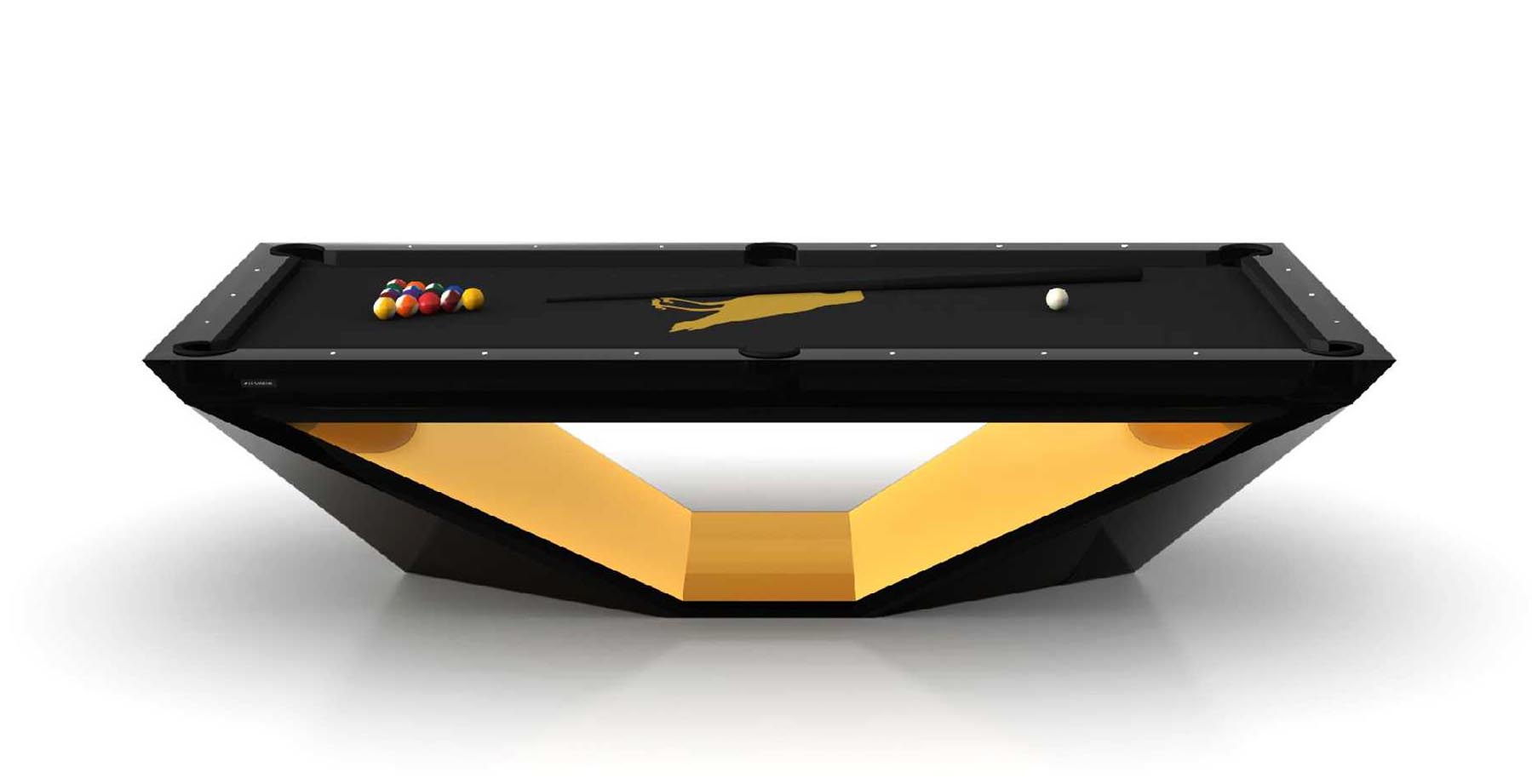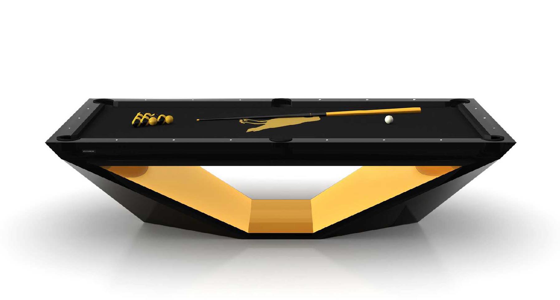 Όπως γίνεται αντιληπτό αυτό το τραπέζι μπιλιάρδου είναι πανάκριβο καθώς αποτελείται από εξωτικά υλικά. Ονομάζεται Stealth, προφανώς λόγω της σχεδίασής του, ενώ είναι φτιαγμένο από αλουμίνιο που συνδυάζει μαύρη λάκα, με φωτάκια LED και φύλλα χρυσού 14 καρατίων κ.α. Μάλιστα το Stealth μπορεί εύκολα και γρήγορα να διαμορφωθεί σε τραπέζι για ping-pong (δώρο οι ρακέτες;).