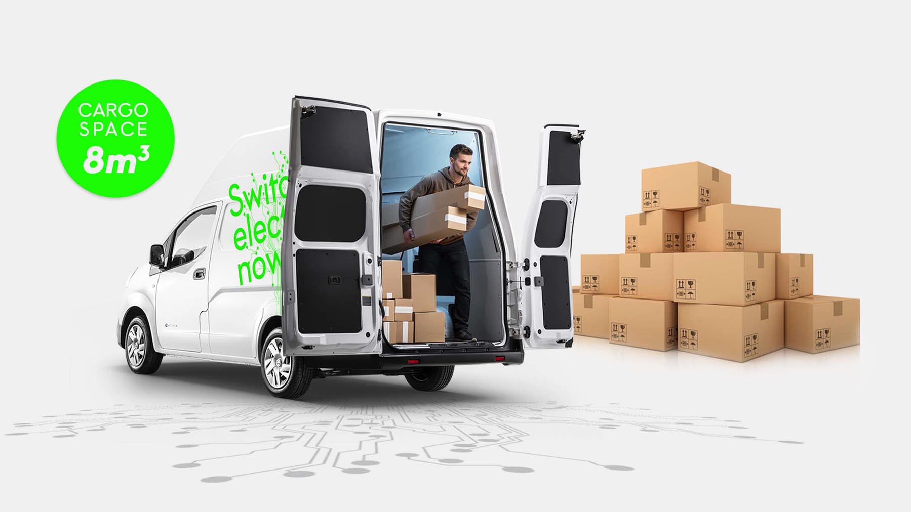 Το νεότερο μέλος της γκάμας του e-NV200 έχει σχεδιαστεί με γνώμονα την ευελιξία και την πρακτικότητα. Συνδυάζοντας έναν επιμήκη χώρο φόρτωσης με έναν εκτεταμένο χώρο οροφής, το φορτηγό των 8m3 επιτρέπει στους οδηγούς να φορτώνουν εύκολα φορτίο, διασφαλίζοντας την άνεσή τους. Το φορτηγό είναι επίσης πολύ ευέλικτο στο δρόμο, με έναν βελτιστοποιημένο κύκλο στροφής, που το κάνει ιδανικό στους δρόμους της πόλης.