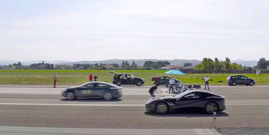 Ένα βιντεάκι λιγότερο από μισό λεπτό έχει καταφέρει να γίνει viral επειδή ένα Tesla ξεφτιλίζει μια 12-κύλινδρη Ferrari. Ωστόσο, αυτή είναι η μισή αλήθεια αφού είναι γνωστό πως ακόμη και ένα λιγότερο ισχυρό ηλεκτρικό -από το 100D των 613 ίππων- έχει τρομερή επιτάχυνση. Ειδικά στα πρώτα μέτρα με την Tesla να δίνει το 0-96 χλμ./ώρα σε 2,3 δλ. για το P100D και την Ferrari κάτω από τα 3 δλ. για την F12.
