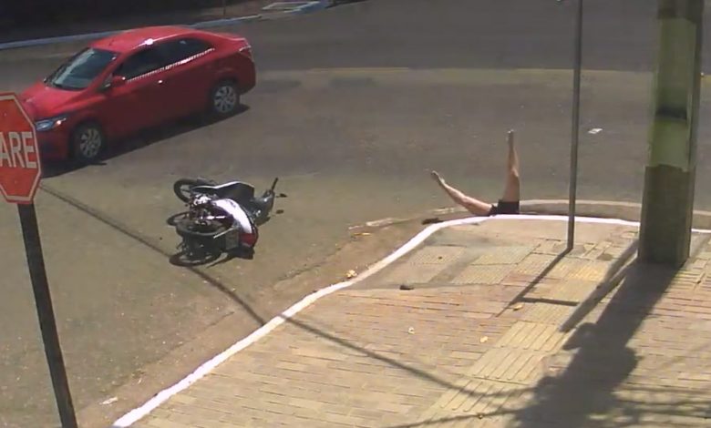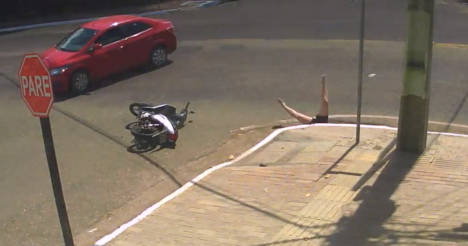Το τραγελαφικό συμβάν καταγράφηκε στην Βραζιλία όπου μια αναβάτης μοτοσικλέτας έπεσε μέσα σε ανοιχτό υπόνομο.