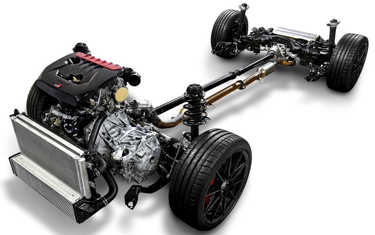 Το γρήγορο Yaris θα εφοδιάζεται με τον ισχυρότερο τρικύλινδρο κινητήρα παραγωγής, με χωρητικότητα 1.618 κυβικών εκατοστών και ισχύ 261 ίππων (η ροπή είναι στα 360 Νm). Η μεταφορά όλης αυτής της ισχύος στο δρόμο θα γίνεται μέσω ενός μηχανικού κιβωτίου 6 σχέσεων και ενός εξελιγμένου συστήματος τετρακίνησης. Ειδικά για το τελευταίο, θα είναι σε θέση να αλλάζει ανά πάσα στιγμή την κατανομή στους δύο άξονες, από 100/0 έως 0/100. Σε φυσιολογικές συνθήκες, ωστόσο, η κατανομή ρυθμίζεται με βάση το πρόγραμμα οδήγησης. Στο Normal η βασική κατανομή είναι 60/40 μπροστά πίσω, στο Sport είναι 30/70 και στο Track είναι 50:50.