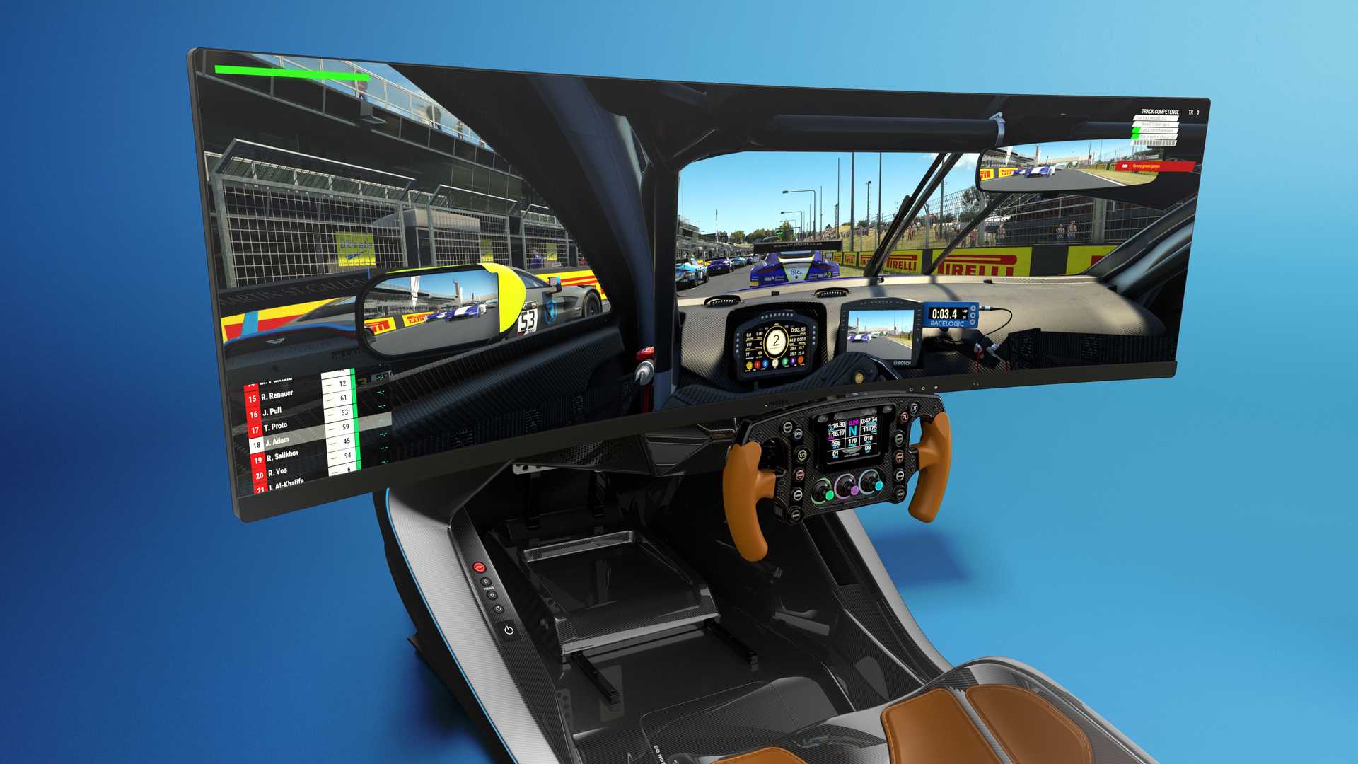 Αν και θα υπάρξει σε μόλις 150 μονάδες αυτός ο πανέμορφος προσομοιωτής μοιάζει με το απόλυτο όνειρο κάθε gamer. Η σχεδίαση του είναι εμπνευσμένη από την Valkyrie και όπως μπορείτε να δείτε περιλαμβάνει ένα μονοκόκ πλαίσιο κατασκευασμένο από ανθρακονήματα και πάνω στο οποίο εδράζεται ένα κάθισμα, η τιμονιέρα και φυσικά η κυρτή οθόνη 49’’.