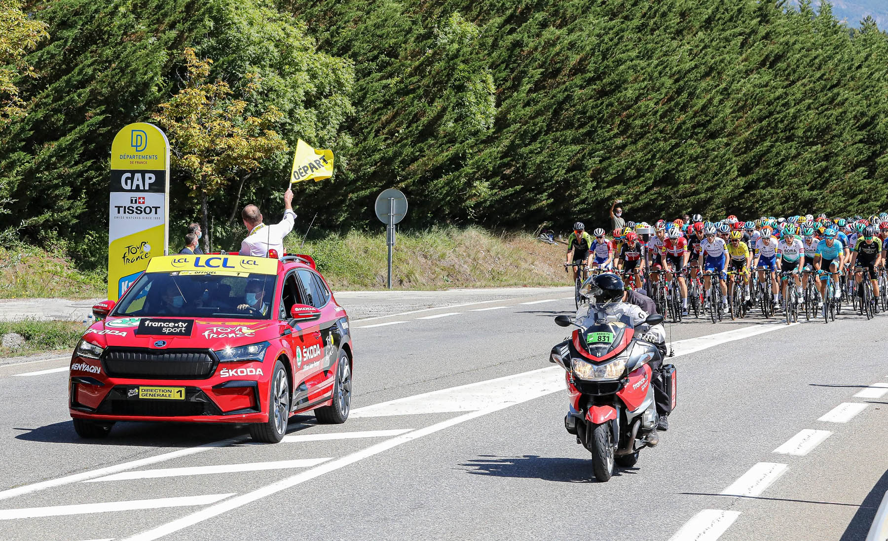 Η SKODA AUTO είναι ο επίσημος κύριος συνεργάτης του Tour de France για 17η συνεχή χρονιά. Στο πλαίσιο της υποστήριξής της, η SKODA παρέχει περίπου 250 οχήματα για τη διοργάνωση του αγώνα και χορηγεί την πράσινη φανέλα για τον κορυφαίο στην κατάταξη πόντων. Παράλληλα, το ολοκαίνουργιο SKODA ENYAQ iV, το πρώτο αμιγώς ηλεκτρικό μοντέλο της μάρκας που βασίζεται στην ΜΕΒ, την πλατφόρμα του Volkswagen group ειδικά για την ηλεκτροκίνηση, αμέσως μετά την παγκόσμια πρεμιέρα του στην Πράγα, έκανε το ντεμπούτο του σε δημόσιους δρόμους ως πλοηγός και κινητό κέντρο διαχείρισης του αγώνα στο Tour de France 2020.
