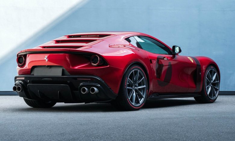 Το σίγουρο είναι πως η Omologata βασίζεται στην 812 Superfast, με το παρμπρίζ και τα φωτιστικά σώματα να είναι ίσως από τα λίγα στοιχεία που δεν έχουν αλλάξει. Η μάσκα είναι καινούργια, το πίσω παρμπρίζ έχει τρία οριζόντια στοιχεία, νέα είναι και τα πίσω στρόγγυλα φώτα, όπως και ένα μεγάλο spoiler με τον διαχύτη.