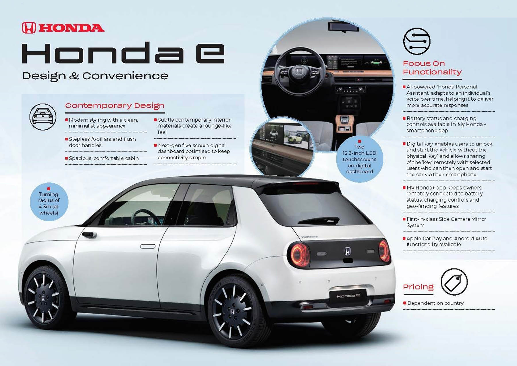 Προφανώς οι άνθρωποι της Honda να κινήθηκαν πιο έξυπνα ρίχνοντας στην αγορά ένα ολόφρεσκο σχέδιο σε αντίθεση με άλλα ηλεκτρικά που πατούν πάνω σε μοντέλα που ήδη κυκλοφορούν (π.χ. όπως το Peugeot e-208). Ένα χαρακτηριστικό αυθεντικότητας αποτελεί και η υποδοχή φόρτισης που όπως και στο Nissan Leaf βρίσκεται στο μπροστινό μέρος.