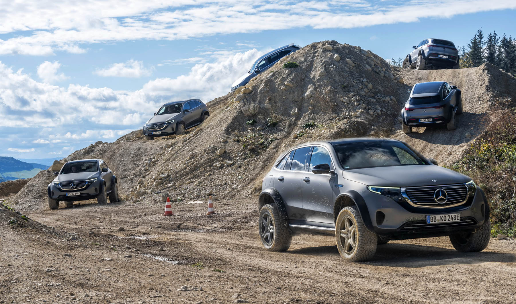 Από εκεί και πέρα υπάρχει μια πιο εμφατική εμφάνιση με φαρδύτερα φτερά και μεγαλύτερη απόσταση από το έδαφος που φτάνει συνολικά τα 29,3 εκατοστά (στην κανονική EQC είναι στα 14 εκ.). Βελτιωμένες είναι και οι γωνίες προσέγγισης και διαφυγής στις 31,8 και 33,0 μοίρες, αντίστοιχα, από 20,6 και 20 μοίρες). Αυτή της ράμπας είναι στις 24,2 μοίρες (από 11,6), ενώ το υδάτινο πέρασμα έχει ανέβει από τα 25 στα 40 εκατοστά. Δίχως κίνδυνο ηλεκτροπληξίας :-).