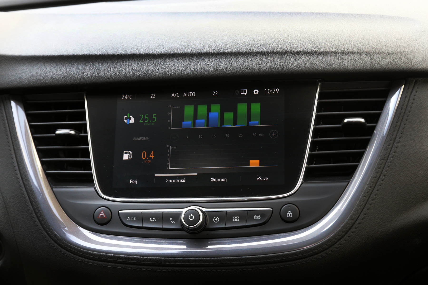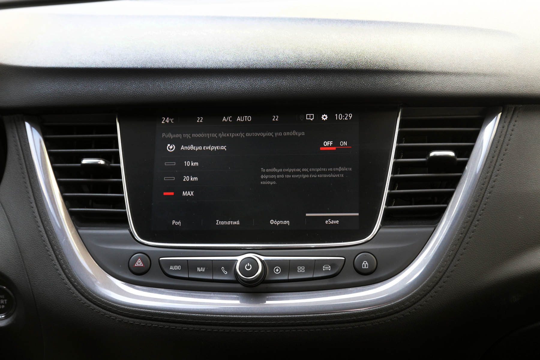 Βολικά είναι τα 4 προγράμματα κίνησης (4WD, Sport, Hybrid, Electric), που ανάλογα τι θα επιλέξεις οι παραμετροποιήσεις που εκτελούνται, στην κίνηση, την οικονομία του οχήματος, αλλά και στην συνολική αίσθηση του Grandland X Hybrid4 είναι αισθητές. Στον τομέα της ασφάλειας και άνεσης το Grandland X προσφέρει μεταξύ άλλων: Automatic Emergency Braking (αυτόματο φρενάρισμα ανάγκης), Advanced Park Assist (υποβοήθηση παρκαρίσματος), Adaptive Cruise Control (ενεργό cruise control) με αναγνώριση πεζών (pedestrian detection), κάμερες 360 και συνδεσιμότητα με το σύστημα Opel On Star. Εξαιρετικό και το σύστημα πλοήγησης που προσφέρει στον εξοπλισμό του. Με το που «άναψε» η ένδειξη βενζίνης, τότε ενεργοποιήθηκε το Navigation System προκειμένου να μας καθοδηγήσει στο πλησιέστερο βενζινάδικο.