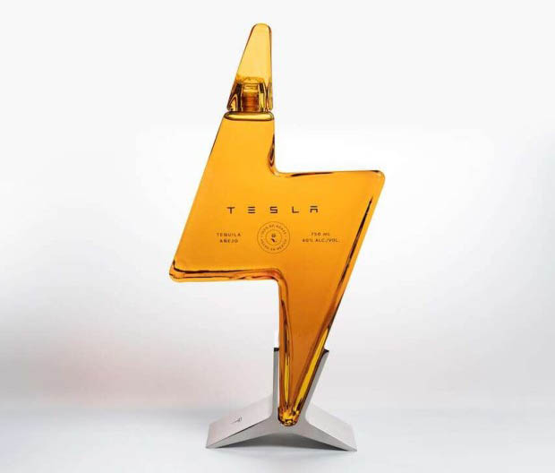 Ωστόσο, ο τεκίλα της Tesla δεν φέρει την εμπνευσμένη σύνθετη ονομασία αλλά την πιο απλή «Tesla Tequila», η οποία περιέχεται μέσα σε ένα πολύ ιδιαίτερο γεωμετρικά μπουκάλι 750 ml. To σχήμα του παραπέμπει σε κεραυνό και ελπίζουμε να ταυτίζεται με το ηλεκτρικό DNA της εταιρίας και όχι με την περίπτωση… να χτυπά ανάλογα στο κεφάλι πίνοντας τη.