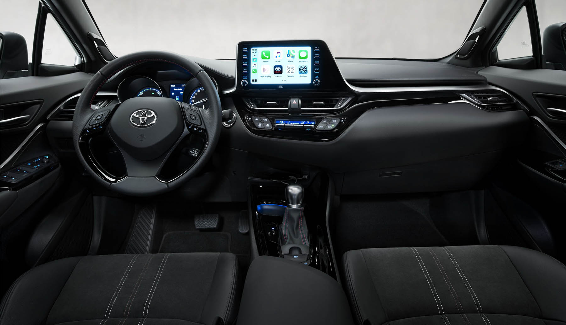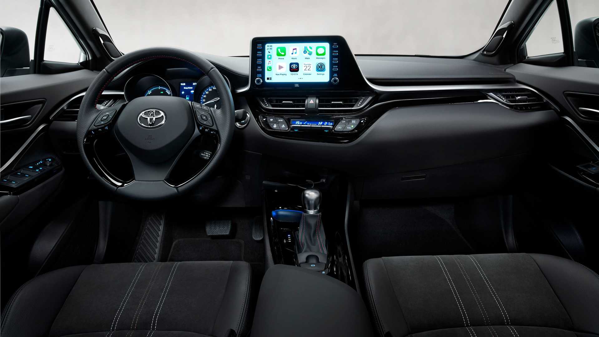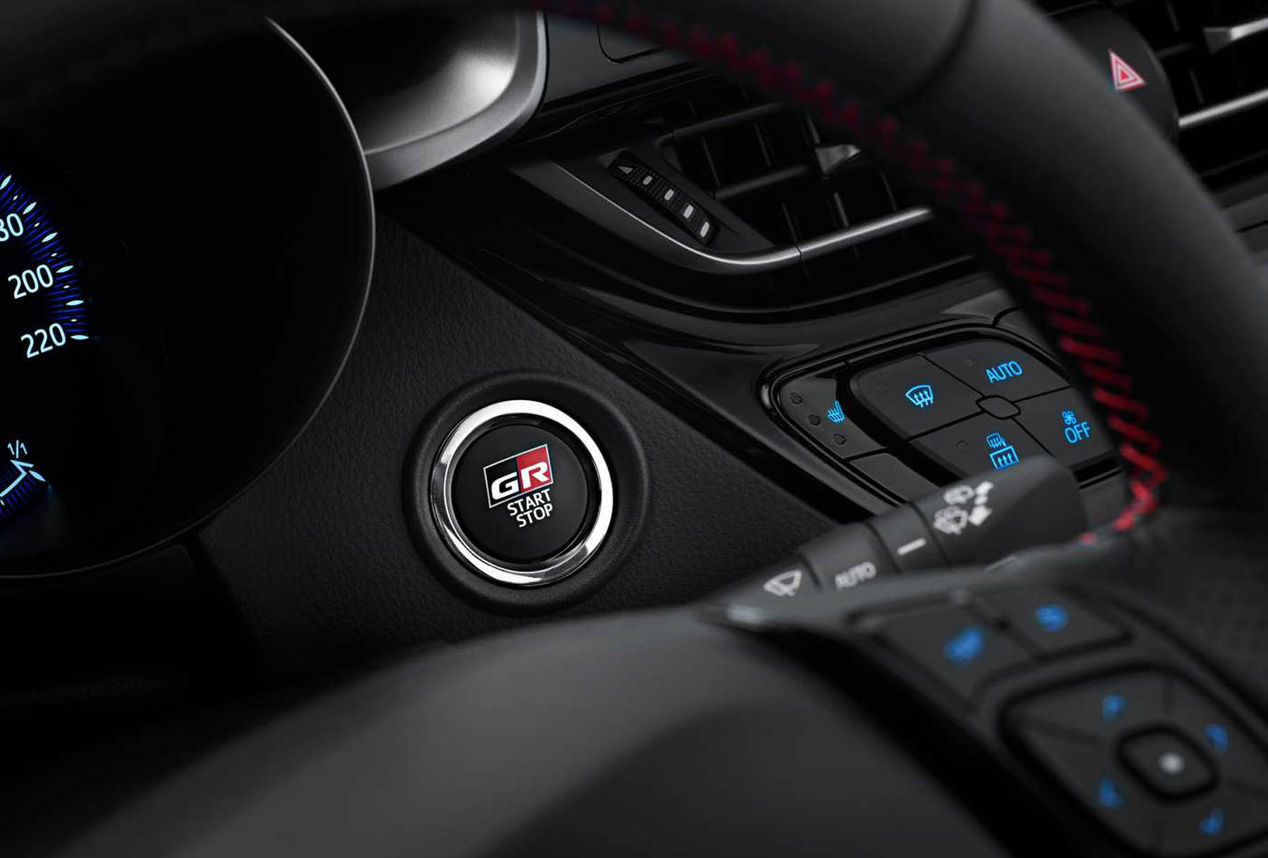 Στο εσωτερικό υπάρχουν νέα σπορ καθίσματα με επένδυση αλκαντάρα, λογότυπα GR σε διάφορα σημεία, επενδύσεις στο τιμόνι και στον επιλογέα, ενώ τον τόνο ανεβάζουν οι κόκκινες ραφές. Όπως και όλα τα υπόλοιπα C-HR διαθέτει το ηλεκτρονικό πακέτο Toyota Safety Sense με όλα τα βοηθήματα για την άνεση και την ασφάλεια του οδηγού και των επιβατών.