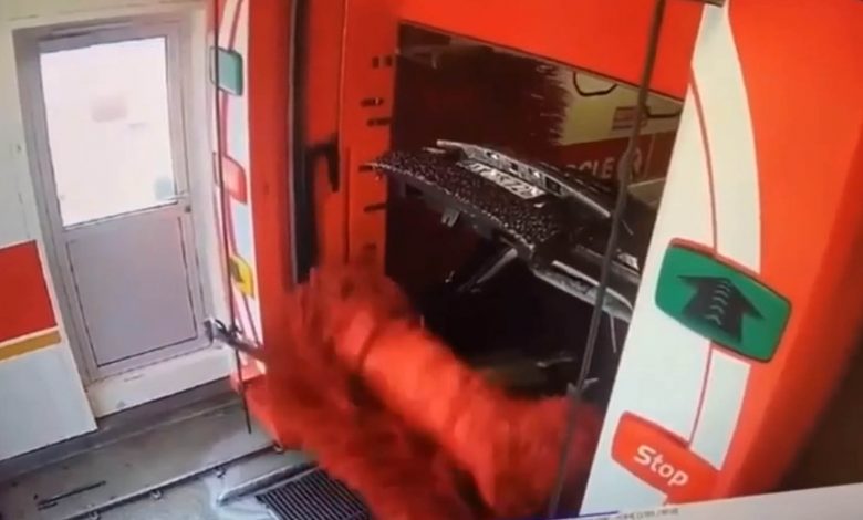 Όπως θα δείτε για κάποιο λόγο η πίσω πόρτα ενός αυτοκινήτου είναι ανοιχτή. Ο αυτόματος μηχανισμός της βούρτσας την αναγνωρίζει και φροντίζει να την πλύνει, αλλά και να την σηκώσει τόσο ψηλά που δεν υπάρχει χώρος για να συνεχίσει. Τελικά, στην «μάχη» φαίνεται να επικρατεί η πιο δυνατή βούρτσα με τους μεντεσέδες της πόρτας να λυγίζουν κάτω από την πίεση.