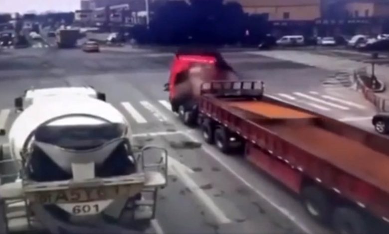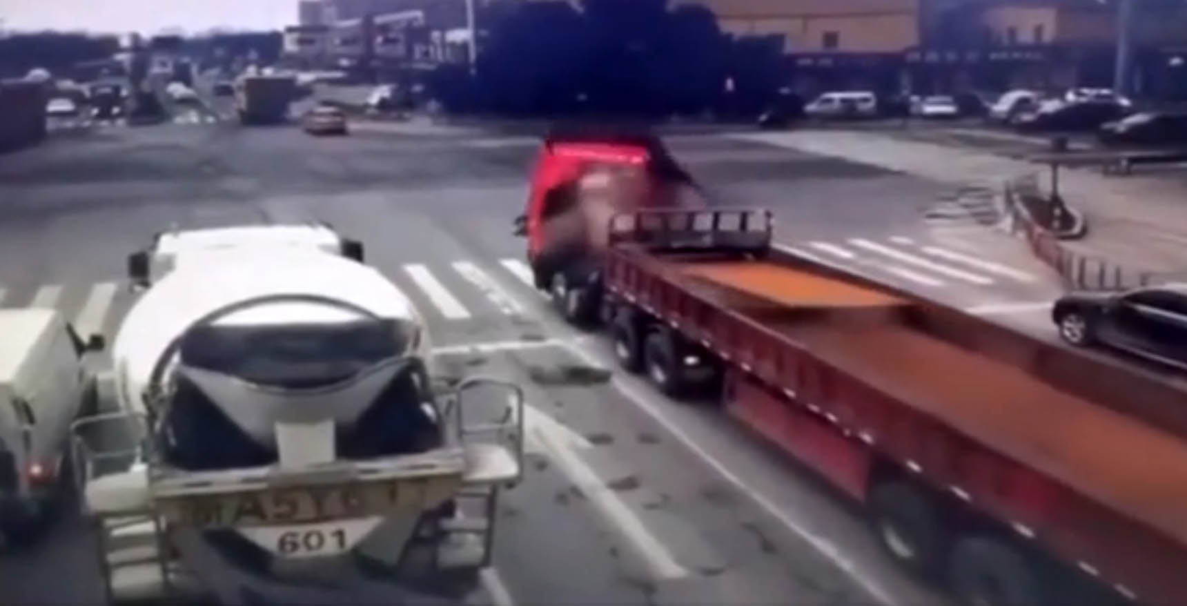 Ταυτόχρονα, από την βίαιη επιβράδυνση η βαριά μεταλλική πλάκα που δεν ήταν δεμένη στην καρότσα γλιστρά απότομα προς τα εμπρός και κόβει σαν λεπίδα την καμπίνα του φορτηγού. Για καλή του τύχη το πέρασμα της λεπίδας έγινε κάτω από τα πόδια του οδηγού που την γλύτωσε με ελαφριούς τραυματισμούς. Κάπου στην Κίνα…