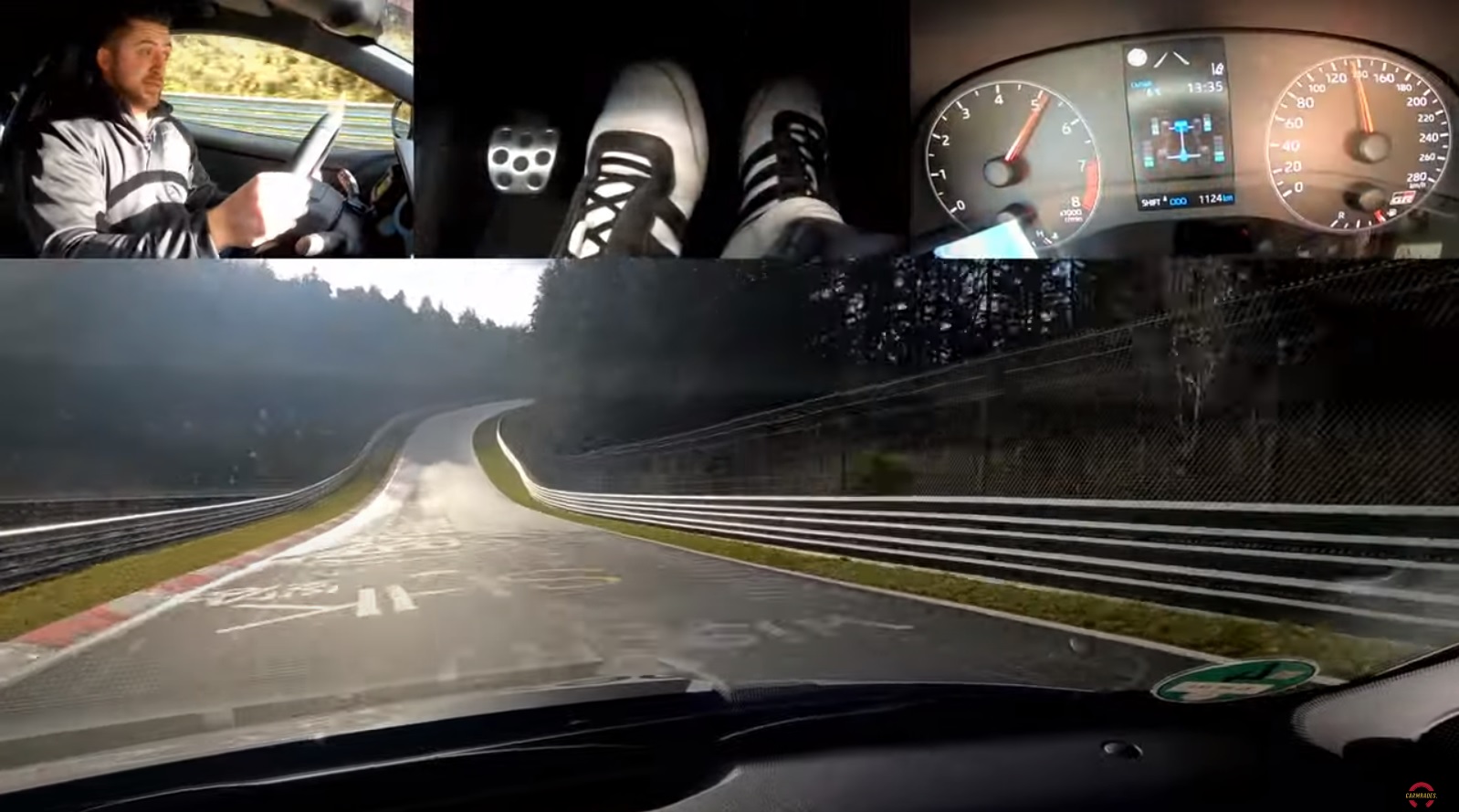Μάλιστα, ο τυπάκος μας δείχνει και πλάνα από την στιγμή που περνά την πύλη της πίστας του Nurburgring και με ταυτόχρονα πλάνα από το πίνακα οργάνων με επιλογή απεικόνισης της λειτουργίας της τετρακίνησης, ένα front view και ένα στα πεντάλ για να μας δείξει την τεχνική «μύτη-τακούνι». Το ενδιαφέρον είναι πως η βόλτα με το GR Yaris είναι σχετικά χαλαρή με τον οδηγό να μιλά συνεχώς για τις εντυπώσεις του.