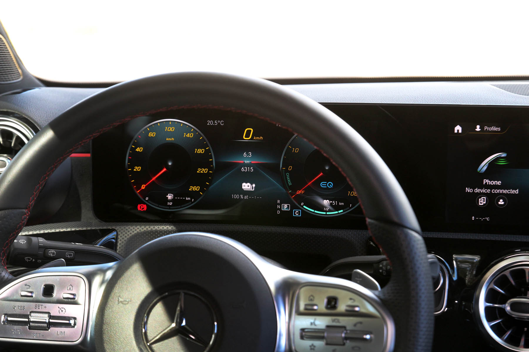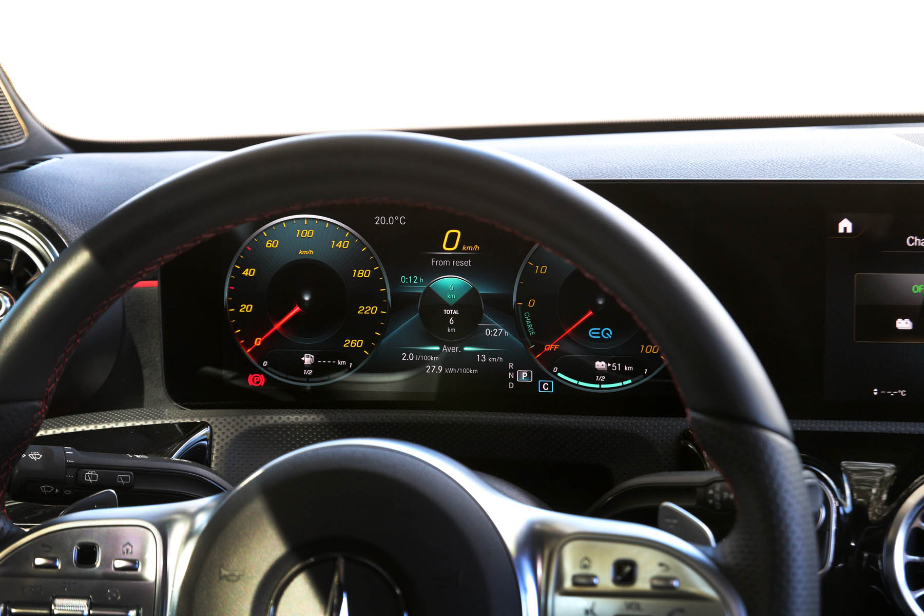 Όλα εκκινούν αθόρυβα και ένα ιριδίζων μπλε-μοβ χρώμα (ή όποιο τέλος πάντων φόντο επιλέξετε) πλημμυρίζει το εσωτερικό του οχήματος όταν ο οδηγός ξεκινά. Έτσι αποκαλύπτεται ο εσωτερικός κόσμος της A Class, με την ευρεία οθόνη και τις κορυφαίες ψηφιακές λειτουργίες του MBUX, όπου η «τεχνητή νοημοσύνη» είναι πανταχού παρούσα σε κάθε διαδρομή. Προτού ωστόσο εκκινήσει κανείς την A Class 250e απαραίτητη είναι η εξοικείωση του με τις ηλεκτρονικές λειτουργίες του οχήματος, ώστε να απολαύσει τις εξελιγμένες δυνατότητες που προσφέρει στον κάτοχο του.