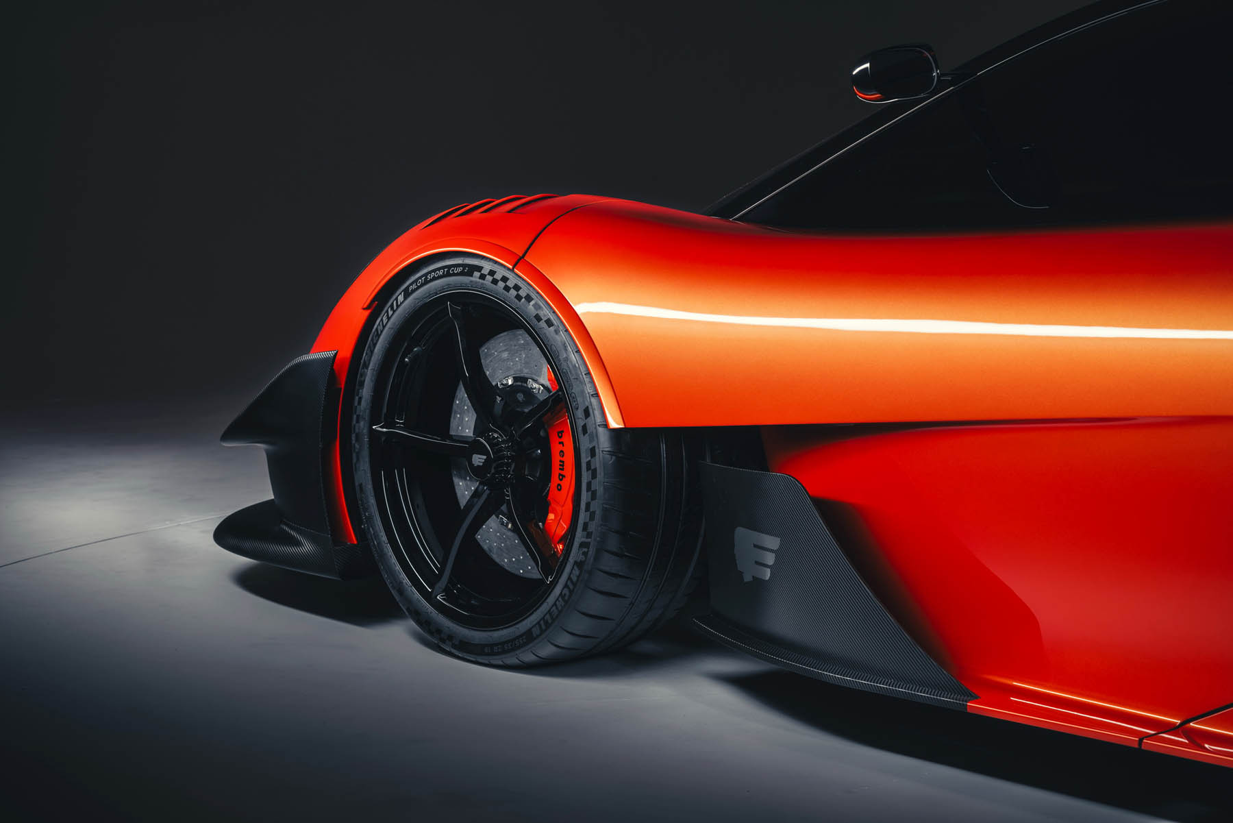 Φυσικά αυτό που τραβά με την πρώτη ματιά την προσοχή είναι η φτερωτή διαμέτρου 400 χλστ. στο πίσω μέρος που στην αγωνιστική έκδοση συνδυάζεται με ένα τεράστιο διπλό διαχύτη και ένα δελτοπτέρυγο. Και όπως είναι λογικό ο Murray έχει φροντίσει για την παραμικρή αεροδυναμική λεπτομέρεια και την καλύτερη ψύξη του μοτέρ. Χαρακτηριστικό είναι πως με την προσθήκη ενός νέου μπροστινού splitter και του όλου πακέτου το συνολικό downforce αγγίζει τα 1.500 κιλά!