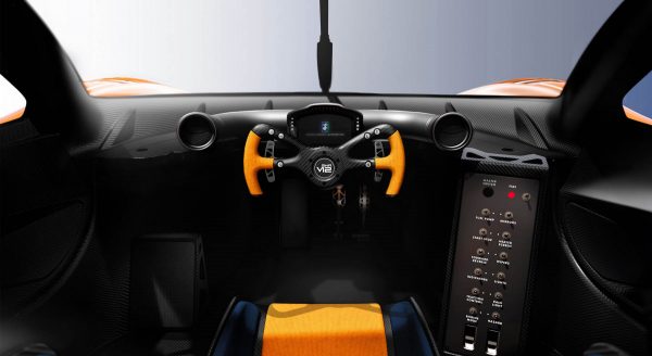 Στον αντίποδα έχουν γίνει πολλές επεμβάσεις και αφαιρέσεις ώστε το απόβαρο να πέσει από τα 986 κιλά της έκδοσης δρόμου στο μαγικό νούμερο των 852 κιλών(!) χάρη στο φουλ κάρμπον αμάξωμα και τα νέα κρύσταλλα. Ταυτόχρονα, έχει αυξηθεί η ισχύ του V12 των 4,0 λίτρων στους 725 ίππους (από 663) με τον κόφτη να μπαίνει στις 12.100 σ.α.λ. (από τις 9.000)!