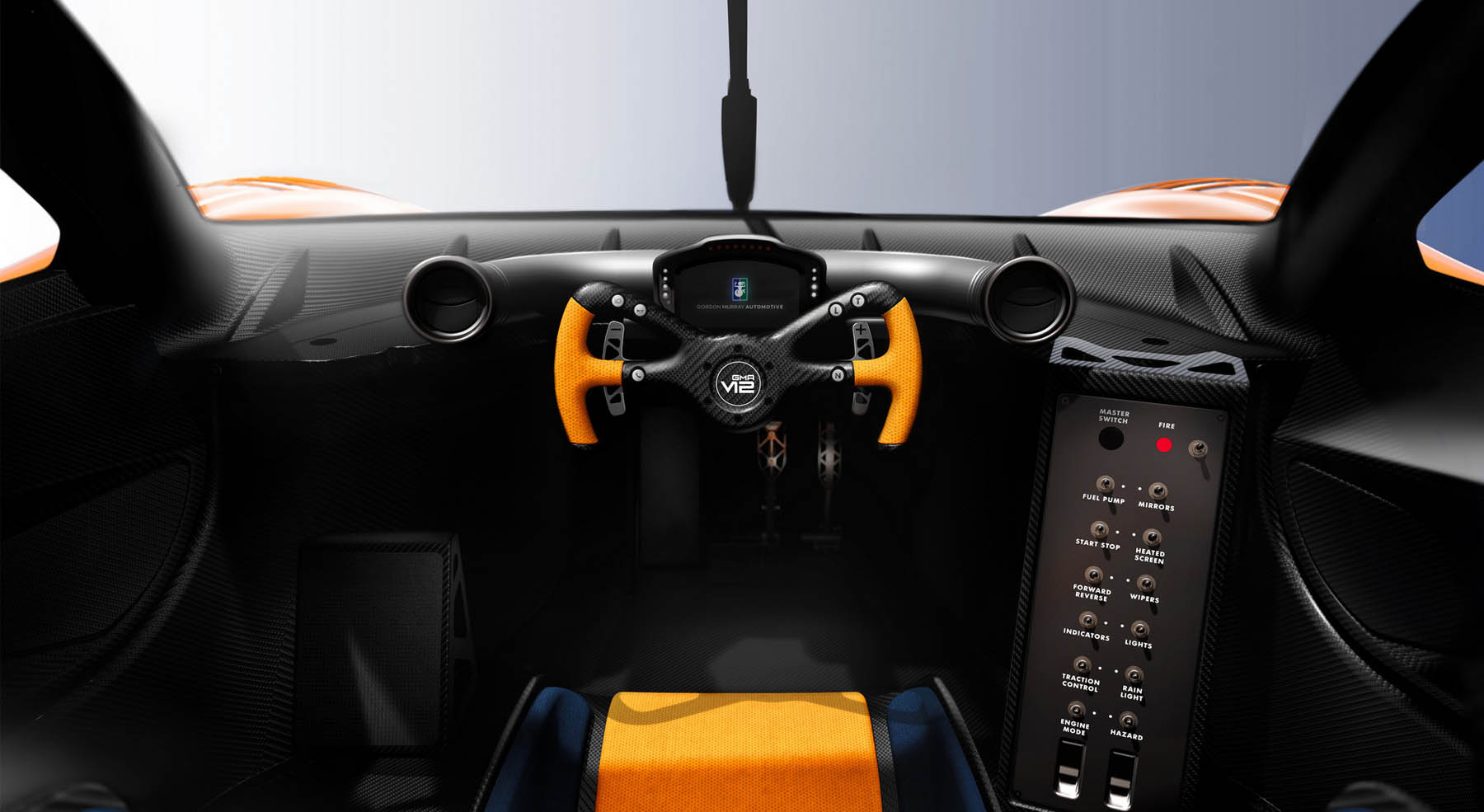 Η καμπίνα διατηρεί το layout της έκδοσης δρόμου, με κεντρικά τοποθετημένη την θέση του οδηγού, ο οποίος κάθεται σε ένα πλήρως αγωνιστικό μπάκετ από carbon fiber. Το T50s είναι αποκλειστικά διθέσιο, με τον συνεπιβάτη να στριμώχνεται στα αριστερά του οδηγού, ενώ στην θέση του δεξιού συνεπιβάτη έχει μπει το σύστημα πυρόσβεσης.