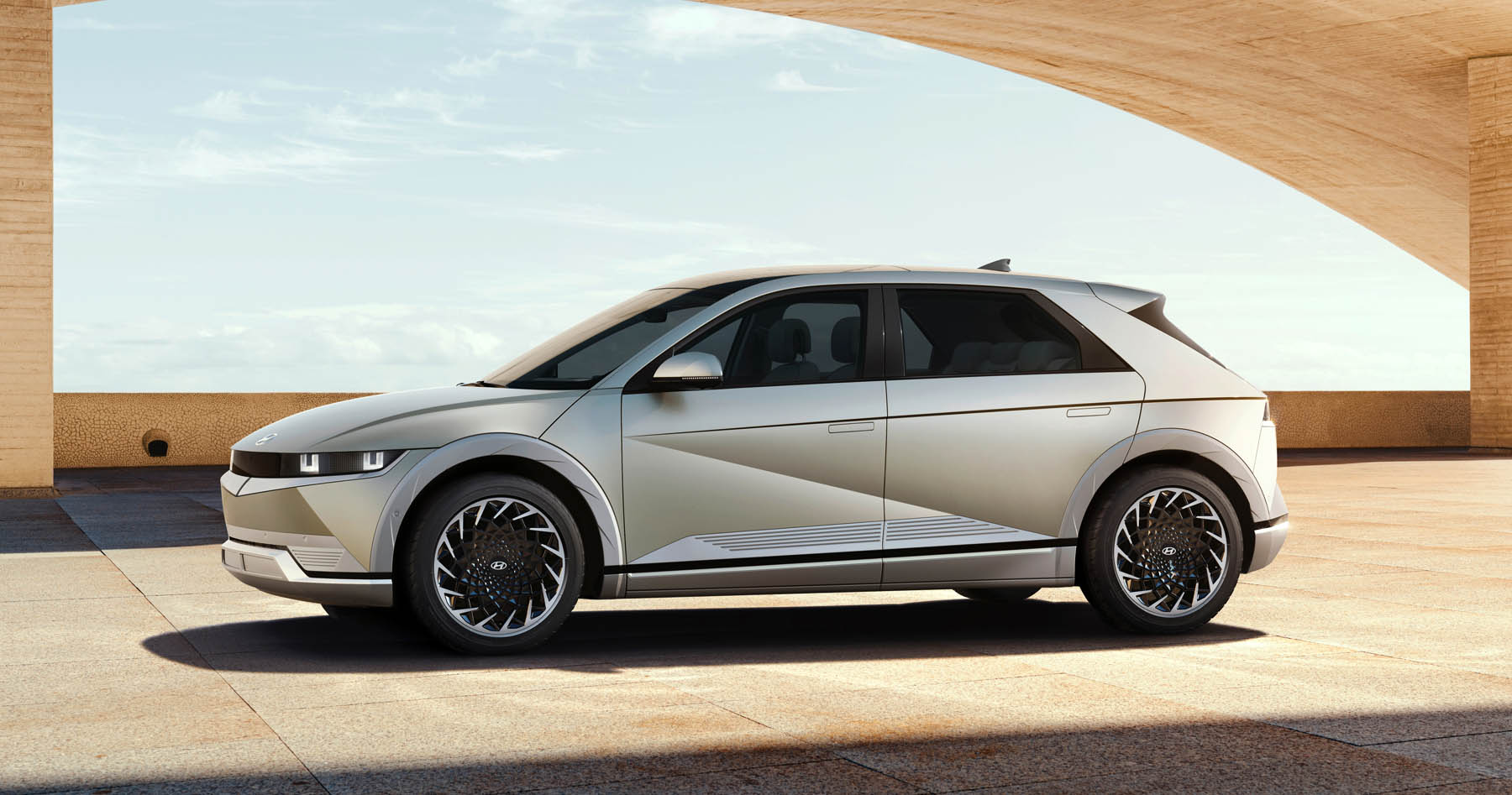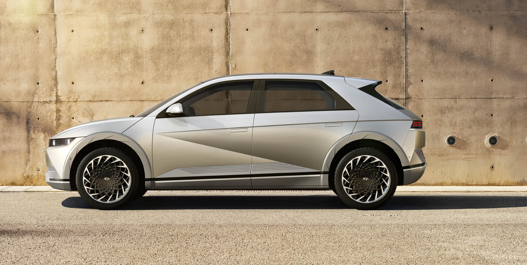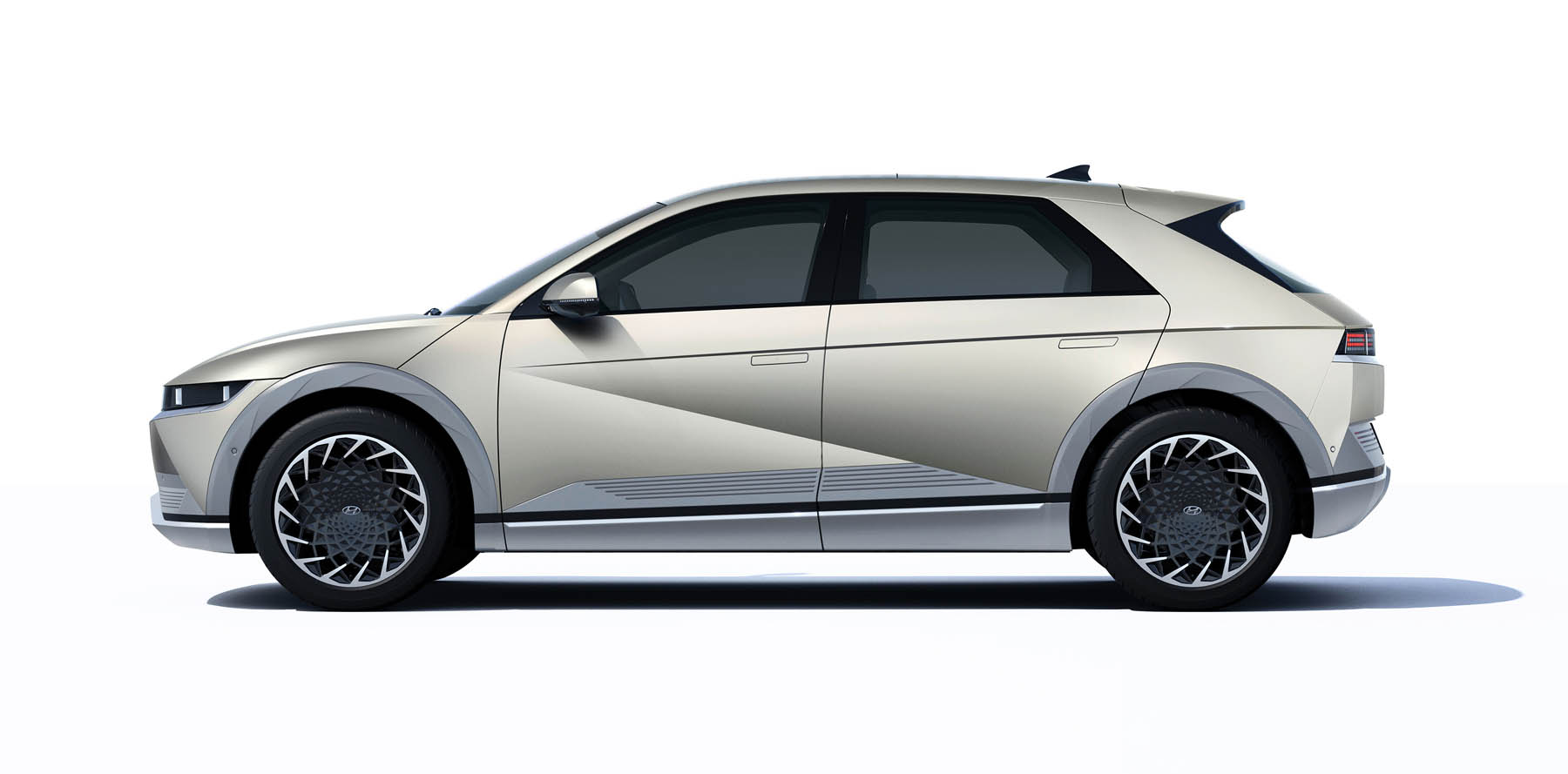 Το μήκος του αμαξώματος είναι στα 4,635 μέτρα και μιλάμε για ένα ηλεκτρικό αυτοκίνητο που είναι μακρύτερο κατά 13,5 εκατοστά από ένα Tucson με το πλάτος στα 1,89 μέτρα και το ύψος στα 1,60 μέτρα. Όπως γίνεται αντιληπτό μιλάμε για ένα μεσαίων διαστάσεων μοντέλο με μεταξόνιο στα 3.000 εκατοστά. Η Hyundai τονίζει το αεροδυναμικό σύνολο με τους κρυφούς διακόπτες στις πόρτες και για πρώτη φορά σε ένα μοντέλο της με 20άρες ζάντες.