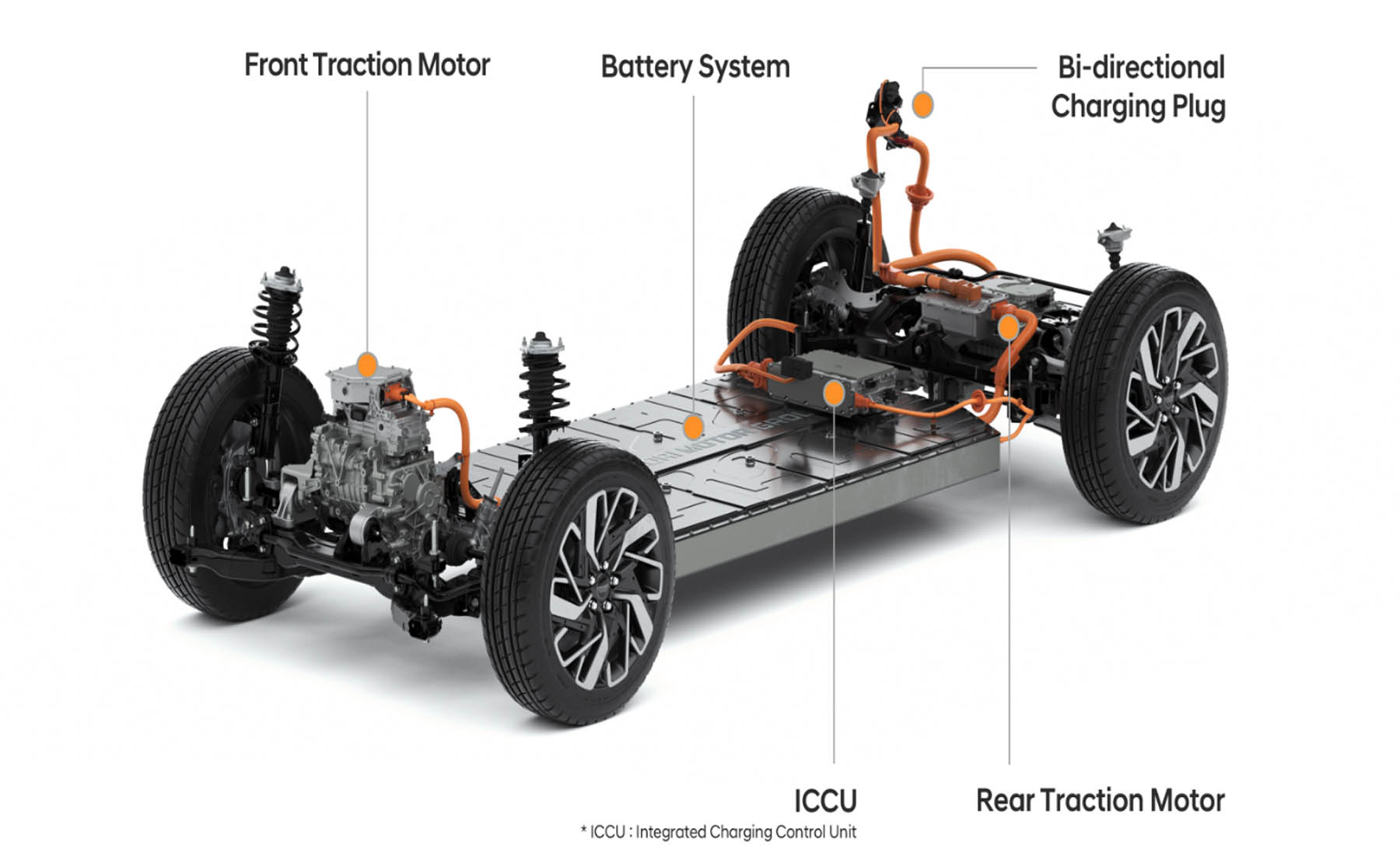 Το Ioniq 5 είναι το πρώτο Hyundai που βασίζεται στη νέα πλατφόρμα E-GMP. Έχει εξελιχθεί αποκλειστικά για ηλεκτρικά αυτοκίνητα και δίκτυο 400 V- 800 V, ενώ προσφέρει ταχυφόρτιση DC έως 350 kW με πλήρη φόρτιση (10%-80%) σε 18 λεπτά κα 100 χιλιόμετρα σε 5 λεπτά. Προς το παρόν δεν αναφέρονται περισσότερα στοιχεία για την AC φόρτιση και τον on-board φορτιστή του αυτοκινήτου, αλλά θα υπάρχει η δυνατότητα παροχής ρεύματος εξωτερικής συσκευής (V2L ή Vehicle to Load) ισχύος έως 3,5 kW.