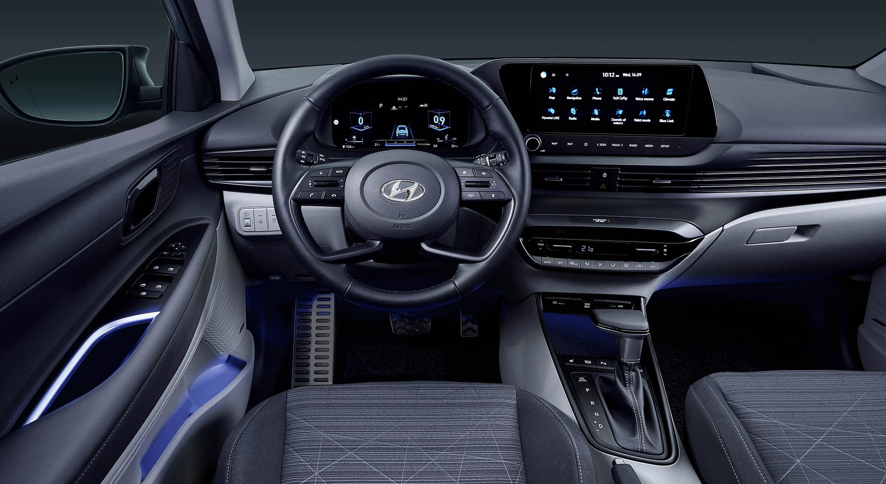 Το ταμπλό μας θυμίζει αυτό του i20 και διαφοροποιείται κυρίως απο τα γραφικά των δύο οθονών. Μία για τον πίνακα οργάνων που είναι στις 10,25 ίντσες και η touch-screen που βρίσκεται στην κεντρική κονσόλα (με τους διακόπτες στην βάση της). Η οποία ξεκινά από τις 8 ίντσες και φτάνει στις επίσης 10,25 στις top εκδόσεις εξοπλισμού. Πάντως, ακόμη και με την μικρή touch-screen υποστηρίζονται όλες οι συνδεσιμότητες σε Apple CarPlay και Android Auto. O εξοπλισμός άνεσης και ασφάλειας είναι υπερπλήρης και έχει όλα τα σύγχρονα συστήματα άνεσης και υποβοήθησης οδηγού.