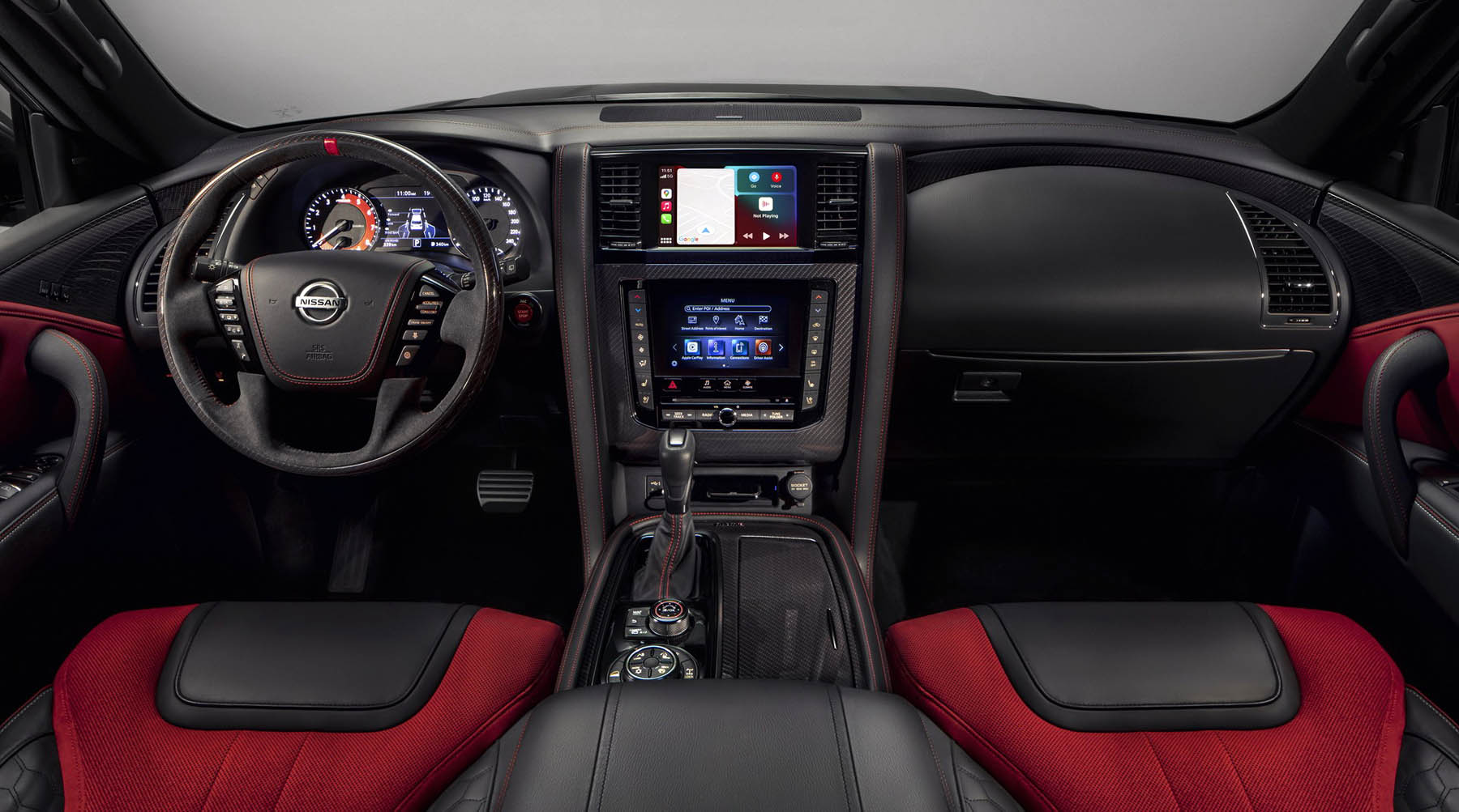 Το Patrol Nismo συμπέφτει με τα 70 χρόνια του πασίγνωστου 4×4 και για αυτό έχει ανάλογα πλούσιο διάκοσμο με περίσσεια αλκαντάρας και κάρμπον επενδύσεων. Επίσης, υπάρχουν σπορ καθίσματα και πίνακας οργάνων, καθώς και άλλες εορταστικές λεπτομέρειες που αναβαθμίζουν την καμπίνα.