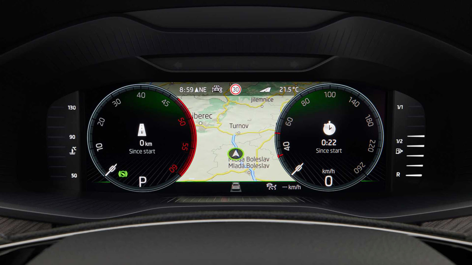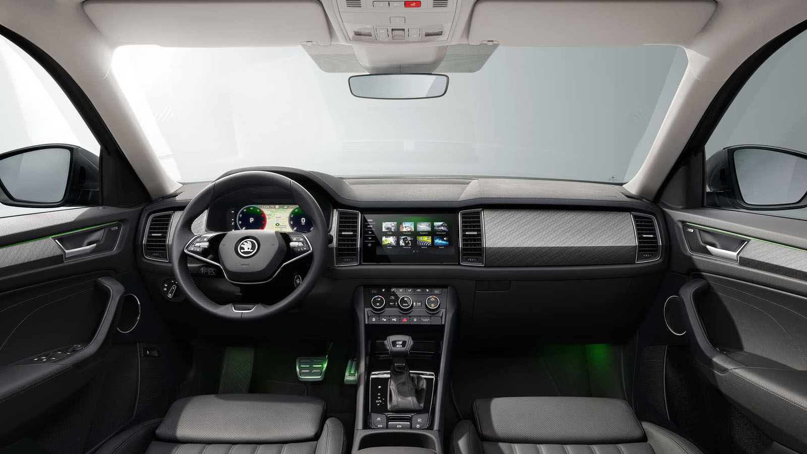 Εσωτερικά, η εμφάνιση και η αίσθηση του εσωτερικού του Kodiaq ανεβαίνουν σε νέο επίπεδο: διαθέσιμο το Virtual Cockpit με οθόνη 10,25 ιντσών και τέσσερις διαφορετικές διατάξεις, κατ’ επιλογή του οδηγού. Πολυλειτουργικό τιμόνι για εύκολο και πλήρη έλεγχο του οχήματος, με paddles ή και δυνατότητα “hands-on detect” σε κάποιες εκδόσεις, νέες διακοσμητικές λεπτομέρειες και ακμές, πρόσθετες ραφές με γαζιά αντίθεσης και βελτιωμένες λειτουργίες ατμοσφαιρικού φωτισμού LED.