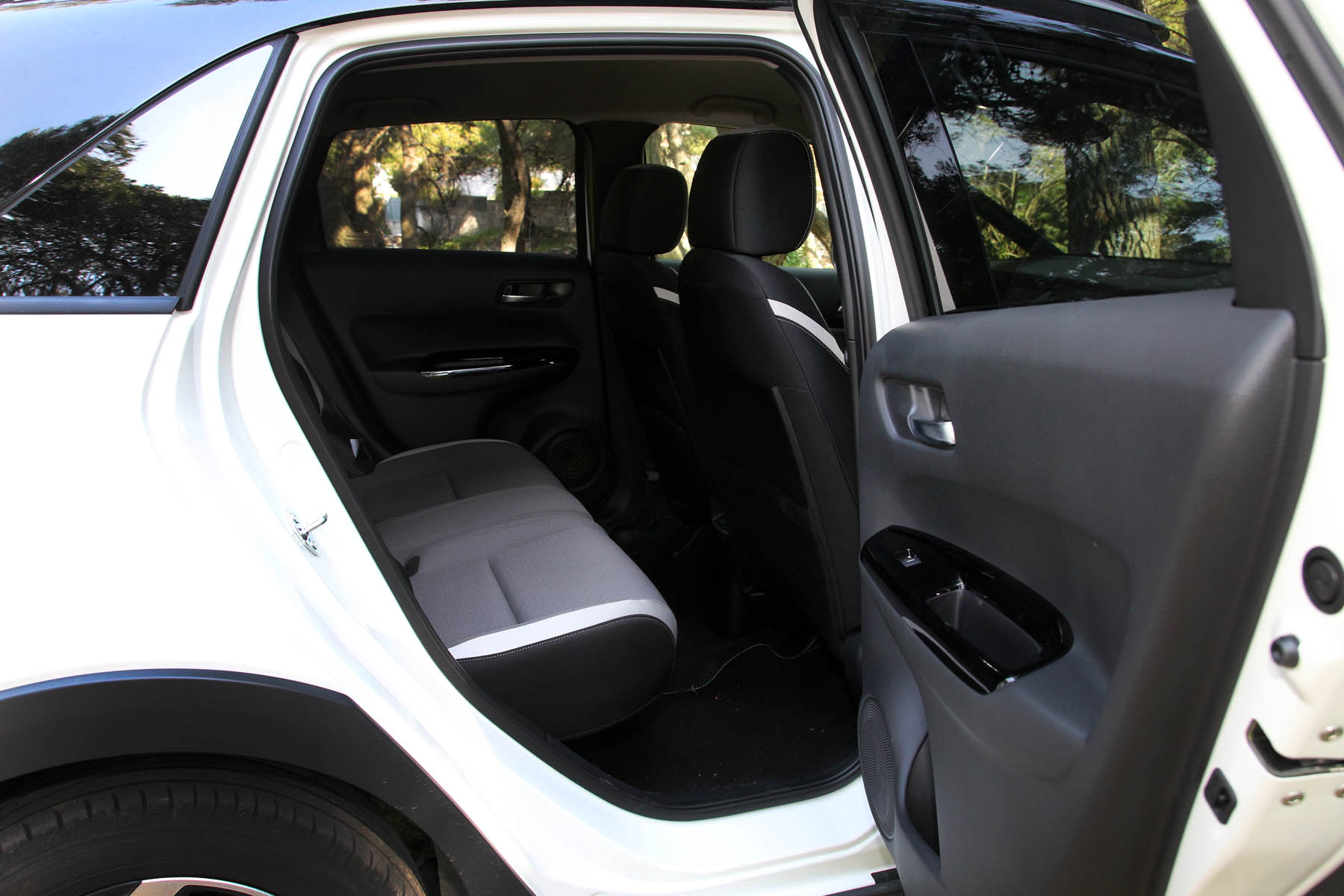 Εξοπλίζεται με διαφορετική μαύρη μάσκα, μαύρα πλαϊνά προστατευτικά, ράγες οροφής και φυσικά το λογότυπο Crosstar. Η απόσταση του από το έδαφος είναι αυξημένη σε σχέση με το «απλό» Jazz (15,2 εκατοστά από το έδαφος για το Crosstar, αντί για 13,6 για το Jazz), ενώ όταν είναι φορτωμένο η διαφορά αυτή είναι πιο αισθητή (14,4 για το Crosstar και 10,5 για το κοινό Jazz). Αυτό σημαίνει πως είναι πιο… σκληραγωγημένο και μπορεί να σας ξελασπώσει σε κάποιο πεζοδρόμιο, σε κακοτράχαλο δρόμο, ή ακόμη και σε μία δύσκολη ράμπα καραβιού όταν είναι φορτωμένο.