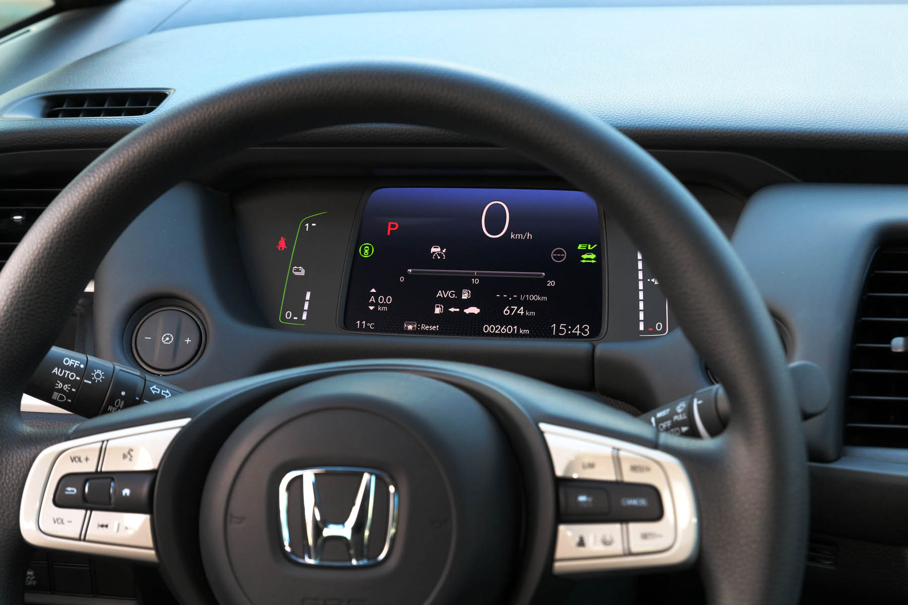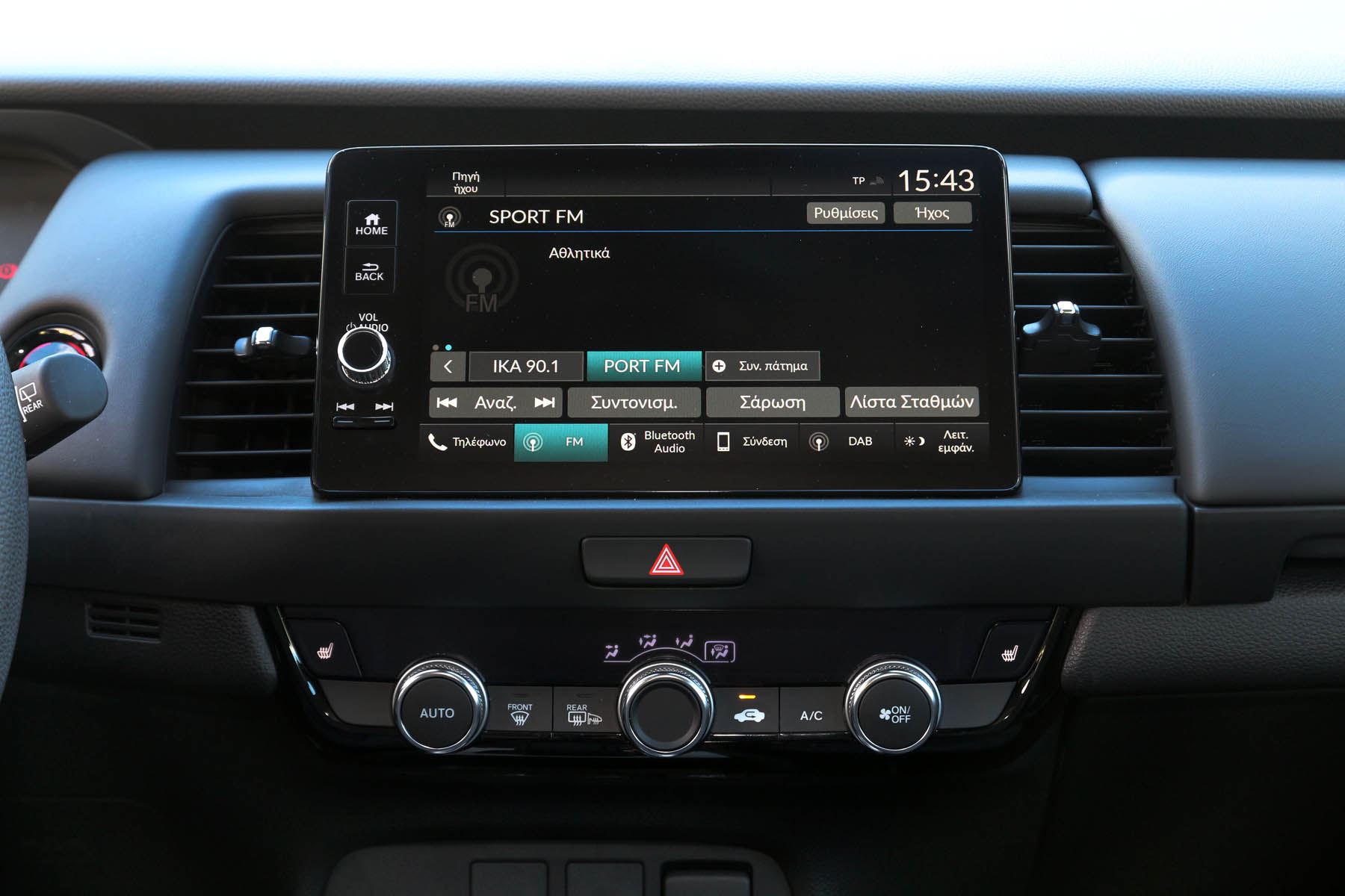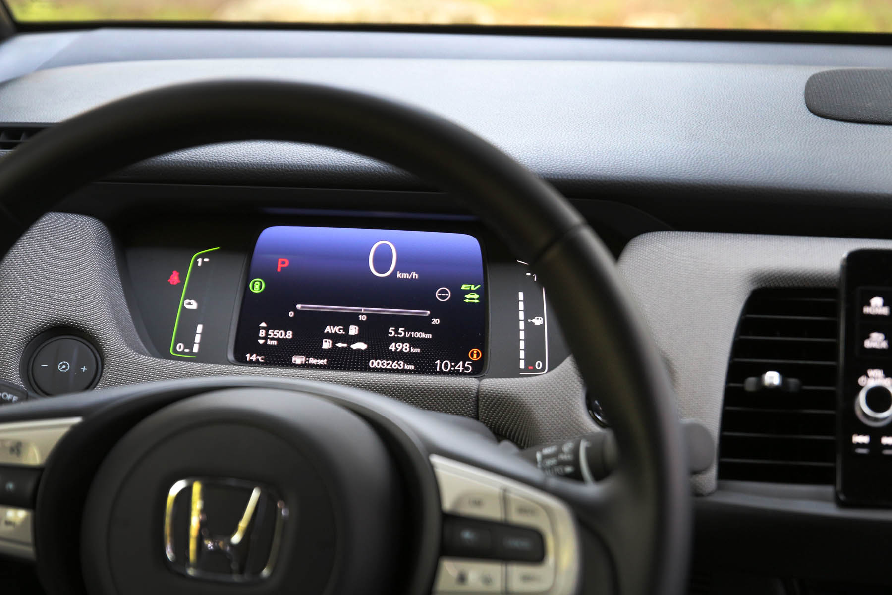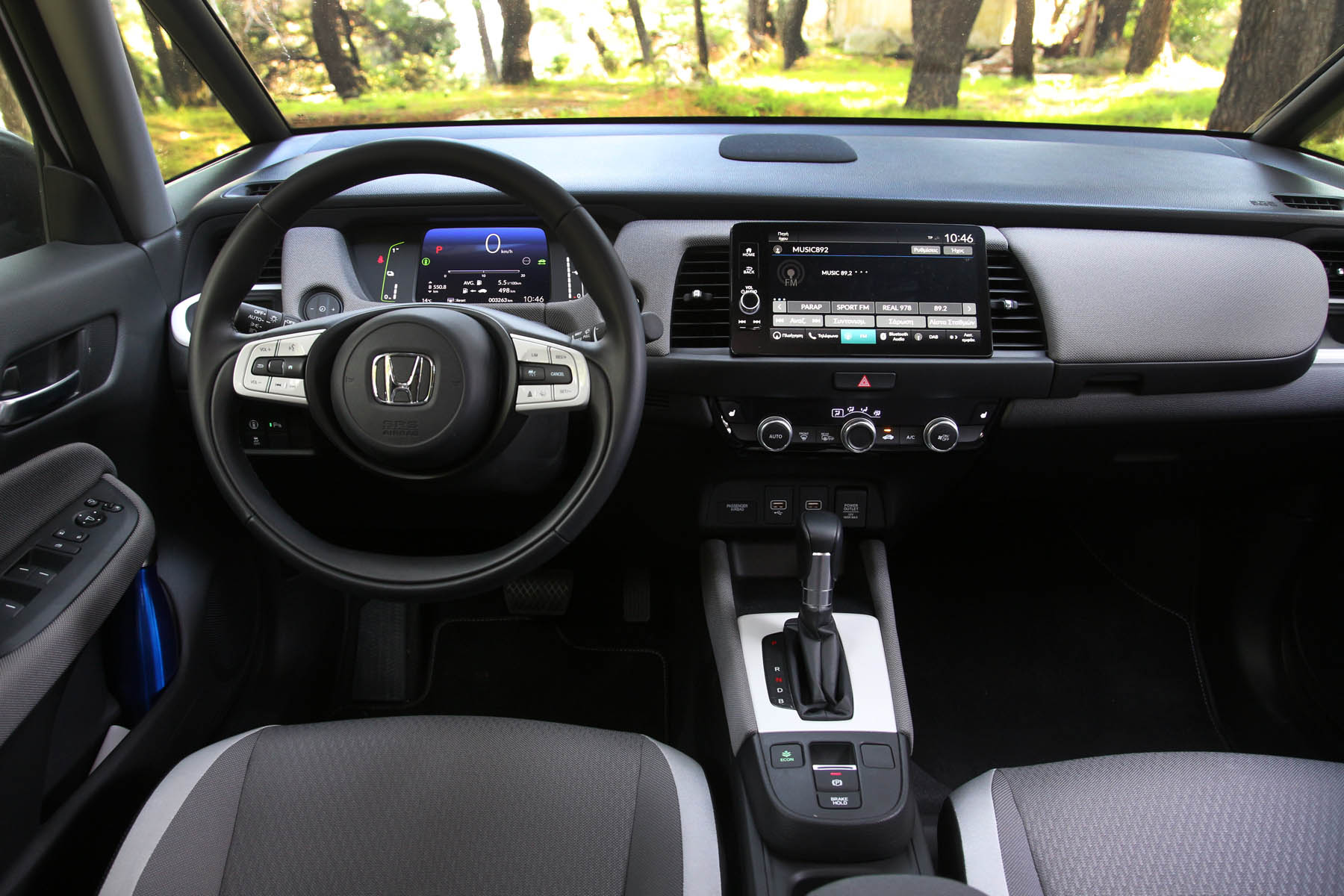 Η ποιότητα κύλισης και η ηχομόνωση έχει βελτιωθεί αισθητά, όπως και η συμπεριφορά σε απαιτητικές διαδρομές. Σε αυτό βοήθησε και η βελτιωμένη κατά 13% στρεπτική δυσκαμψία του πλαισίου. Γενικότερα, δεν είναι δύσκολο να καταλάβεις την ποιότητα που αποπνέει το Jazz Hybrid -ακόμα και μετά από σύντομη συμβίωση- καθώς λεπτομέρειες όπως η καλύτερη θέση οδήγησης και η βελτιωμένη ηχομόνωση έρχονται να δέσουν με πιο «χτυπητές γκατζετιές», όπως η εντυπωσιακή οθόνη αφής multimedia 9 ιντσών (στη βασική έκδοση) αλλά και ο ψηφιακός πίνακας οργάνων 7 ιντσών. Ο τελευταίος απεικονίζει με ακρίβεια την αυτονομία της μπαταρίας αριστερά και αυτήν της βενζίνης δεξιά, κάτι που σε διδάσκει τι πρέπει να κάνεις οδηγικά για να βοηθήσει στη φόρτιση της μπαταρίας.