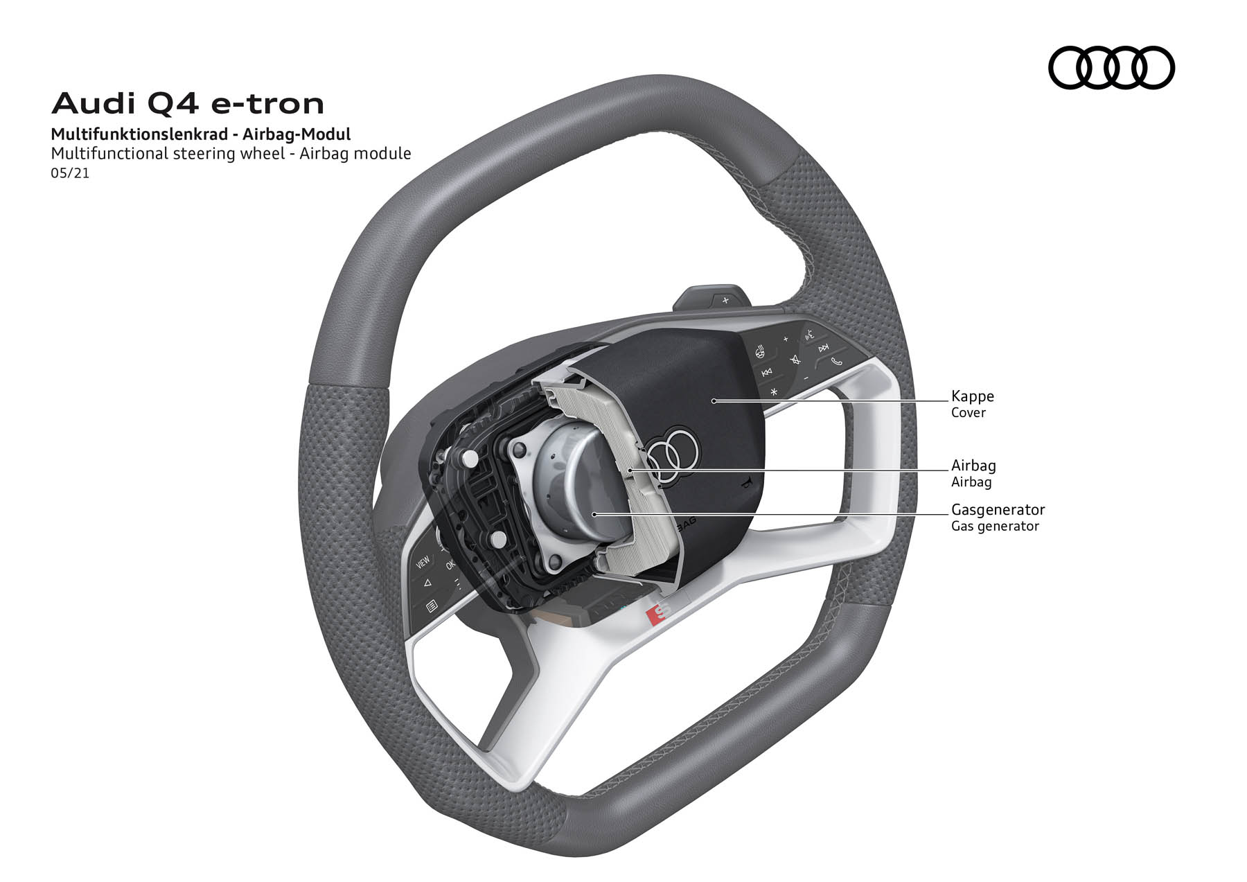 Καθώς εξελίχθηκαν περαιτέρω, οι αερόσακοι θα μπορούσαν να διπλωθούν όλο και περισσότερο. Ταυτόχρονα, η λειτουργία τους εξαρτάται σημαντικά από το υλικό κατασκευής τους: φυσικά το περίγραμμα των γραμμών στο οποίο θα σκιστεί η θήκη που τους περιέχει πρέπει να είναι αόρατο, αλλά όταν συμβαίνει ένα ατύχημα, αυτά τα προκαθορισμένα σημεία θραύσης πρέπει να ανοίξουν σε μια στιγμή. Όσον αφορά τον αριθμό των διακοπτών, η Audi ορίζει ότι μόνο οι λειτουργίες στις οποίες ο οδηγός χρειάζεται γρήγορη πρόσβαση κατά την οδήγηση είναι ενσωματωμένες στο τιμόνι.